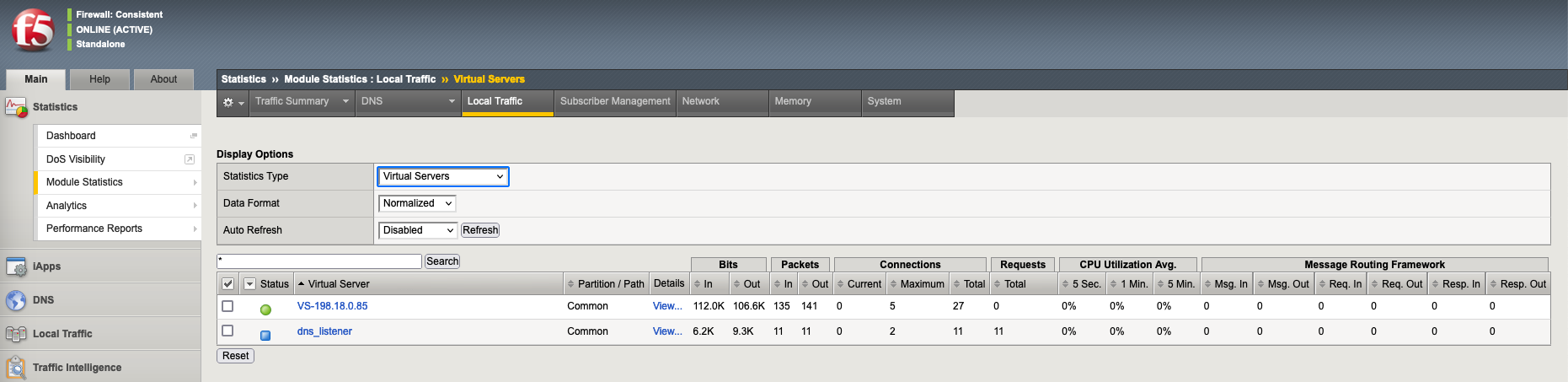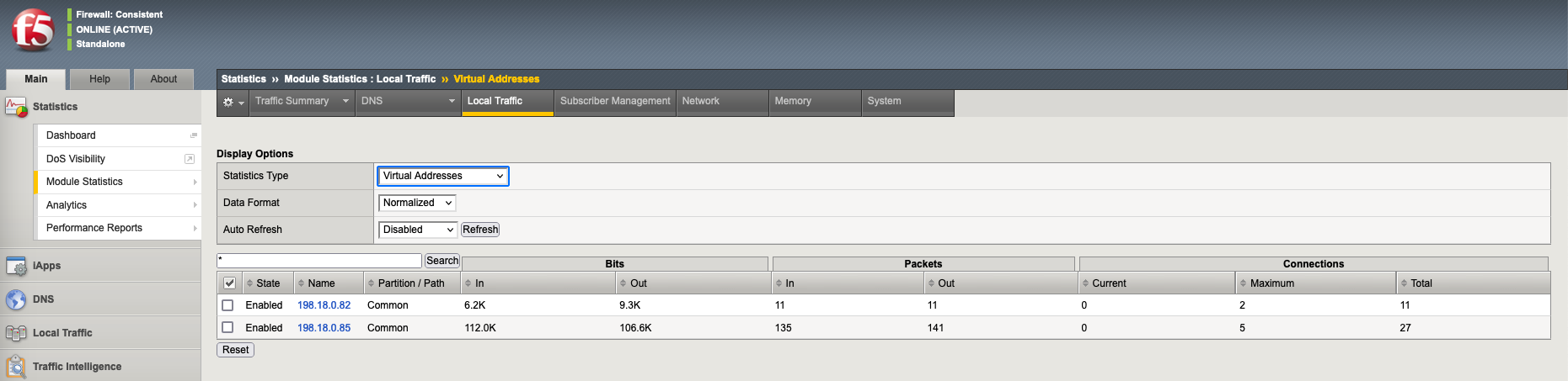 Going to Module Statistics, it shows the counter of how many times the virtual server has been hit along with some details of each member’s traffic data