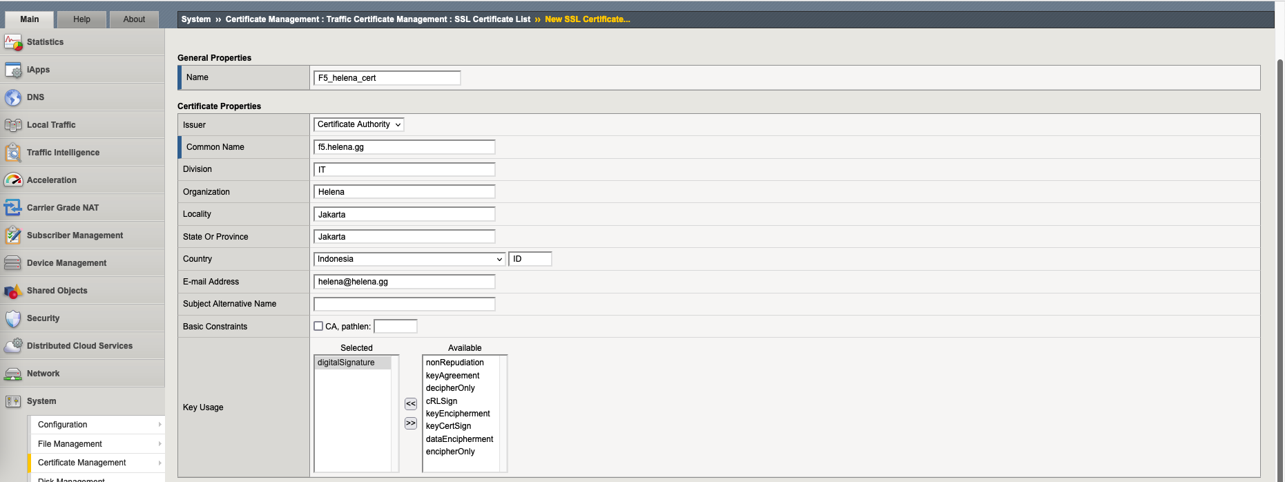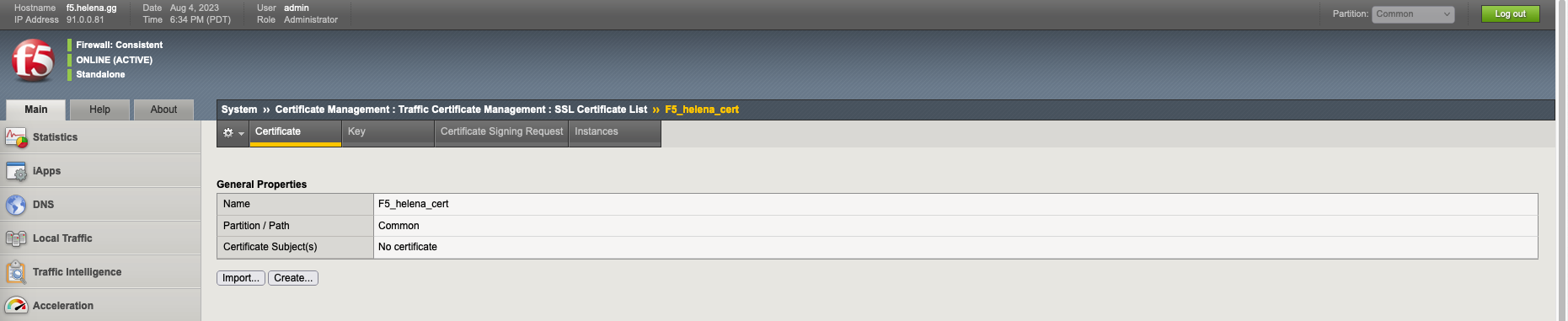First let’s update F5’s certificate so it’ll use a CA Signed Certificate.