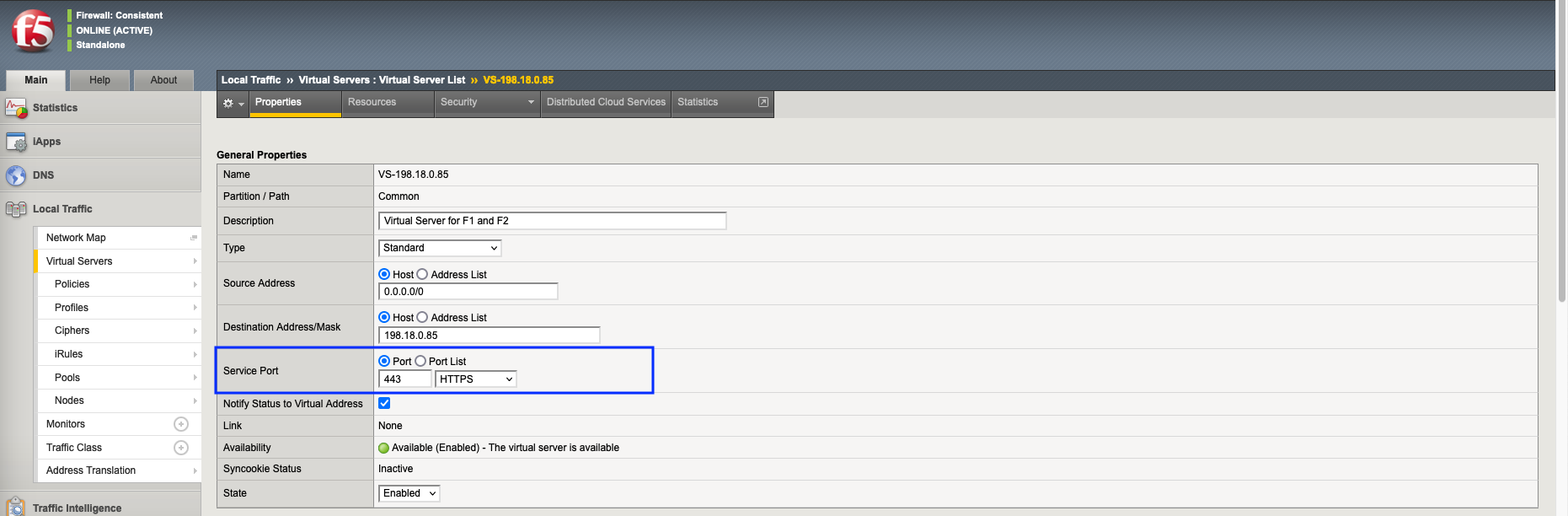 Now go to the LTM’s Virtual Server, change the port to 443 and add the SSL Profile