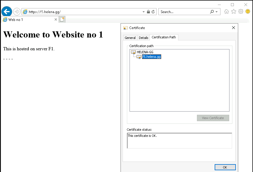 And now if we access the Virtual Server on https://f5.helena.gg, we should get a secure SSL connection
