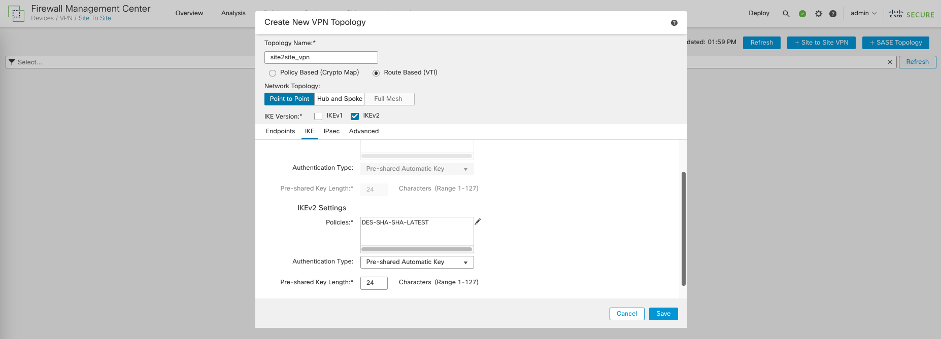Cisco FTD Site to Site IPSec VPN with FMC