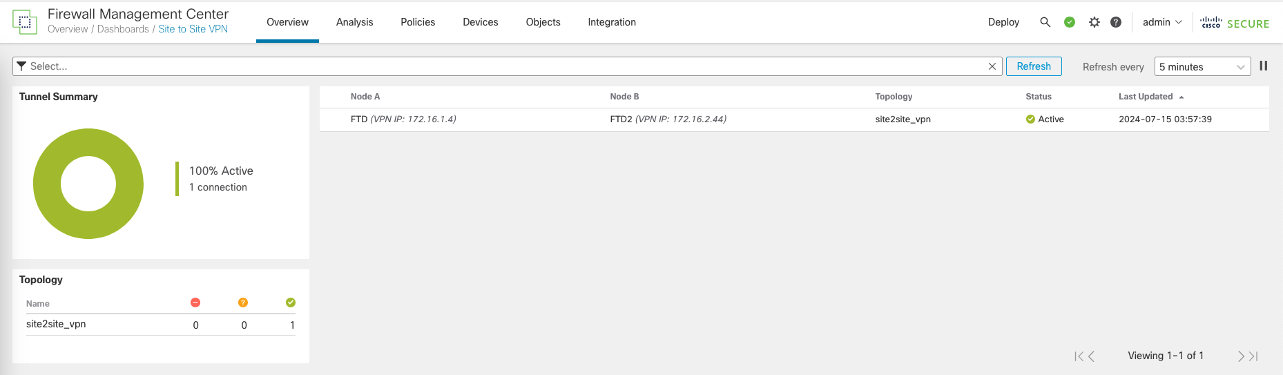 On Overview » Site to Site VPN, we see the overall status of the VPN