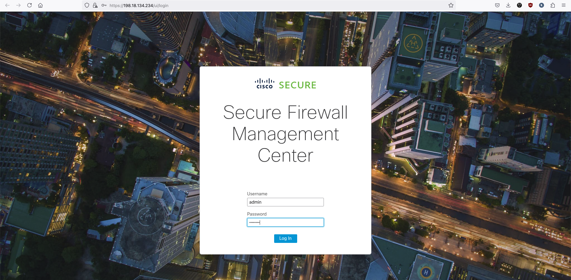 After a while, the FMC is now accessible on web browser with credentials set on the OVA deployment
