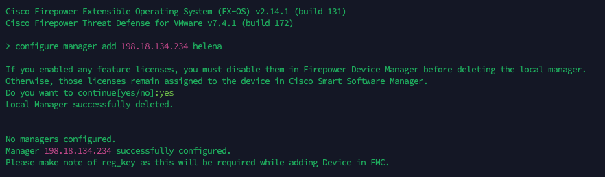 configure manager add 198.18.134.234 helena