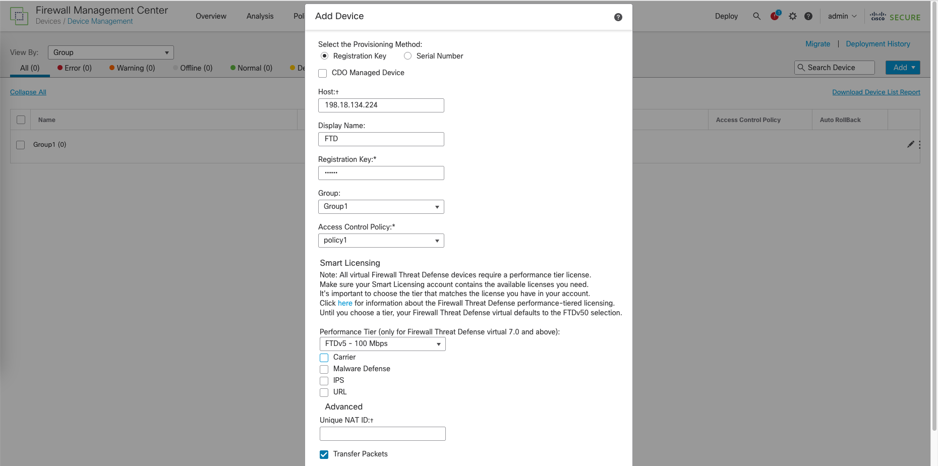 Adding FTD to FMC