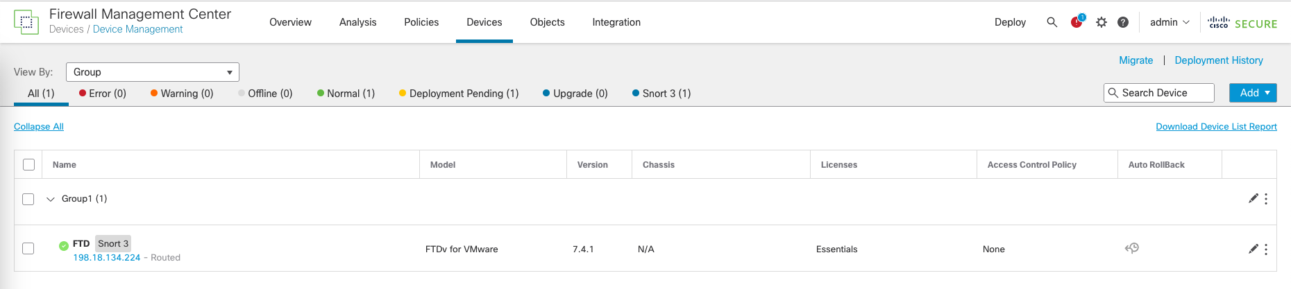 Now the FTD has been onboarded