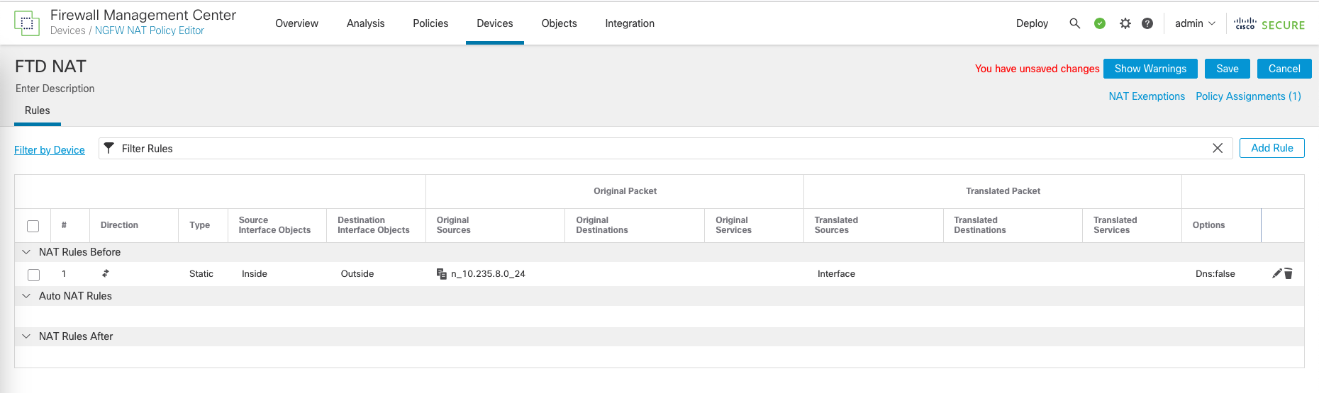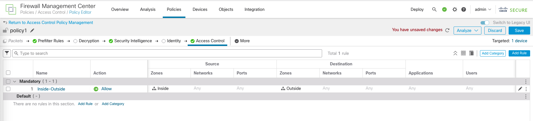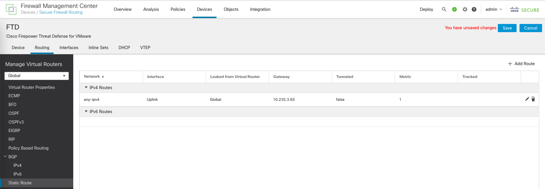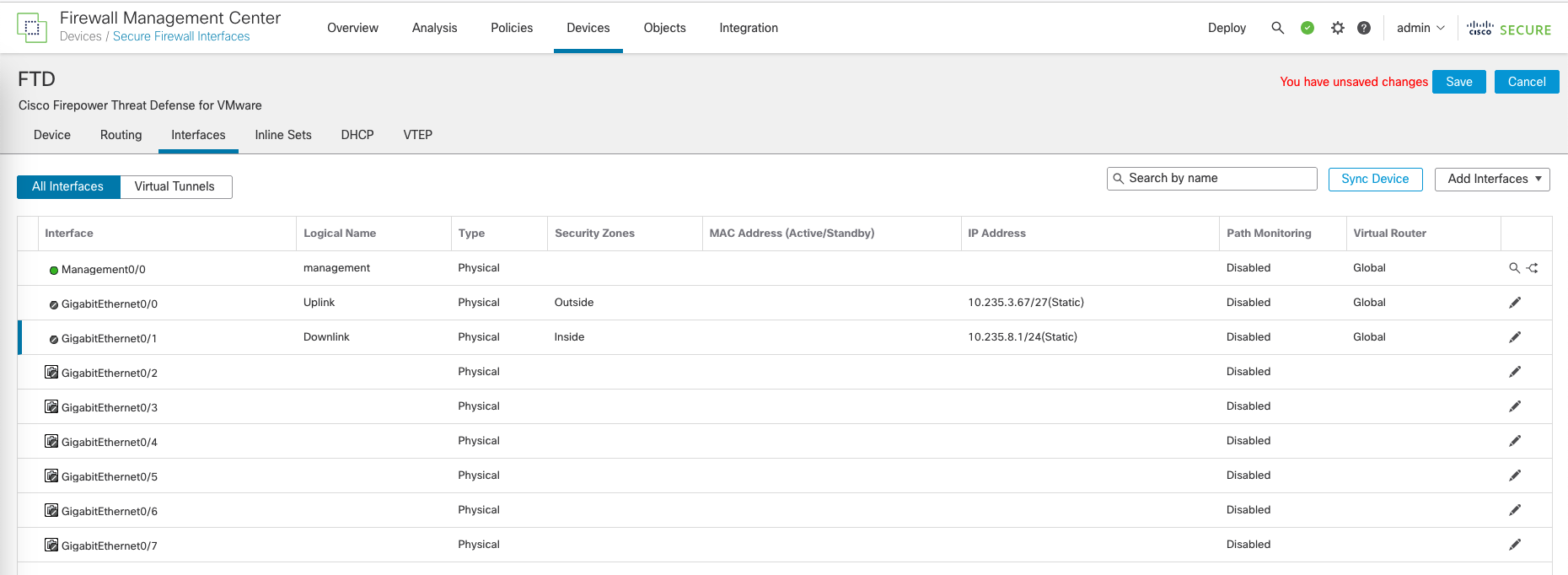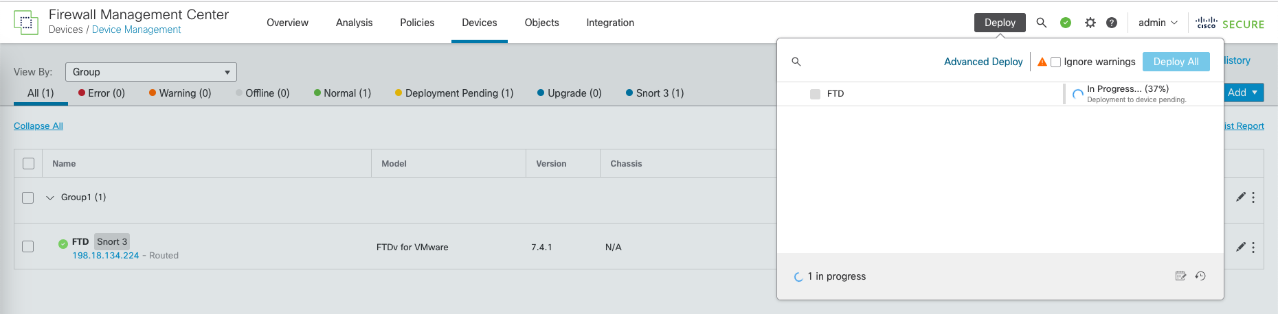 Finally, hit Save and Deploy the changes to the FTD