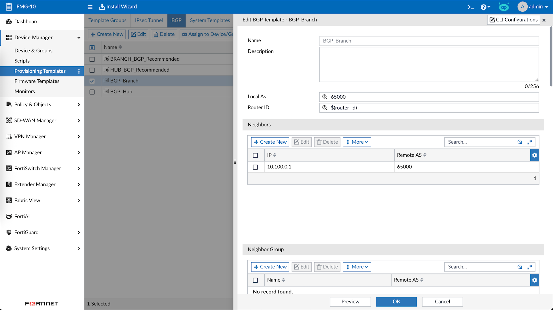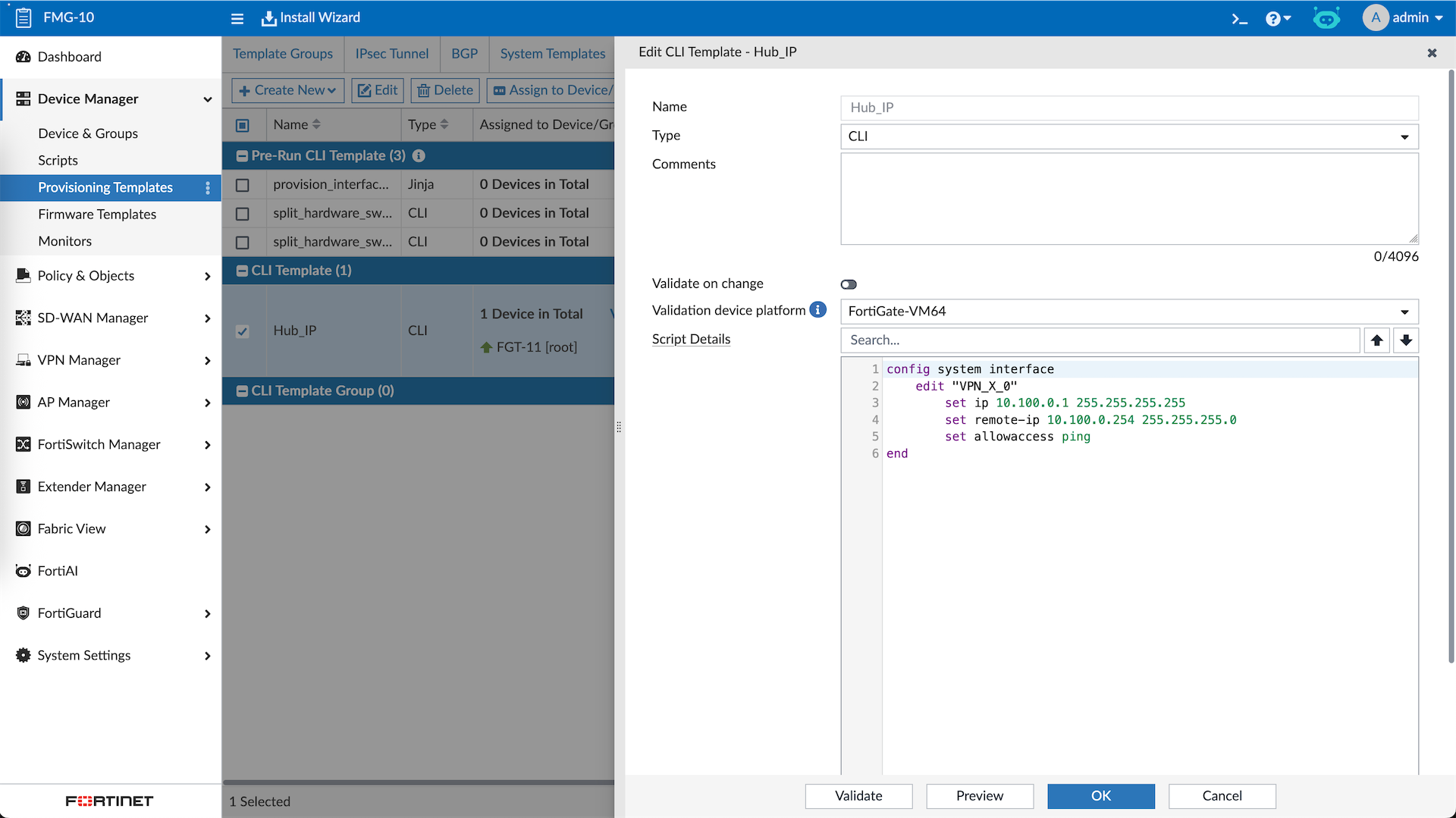 FortiManager VPN & SD-WAN Manager