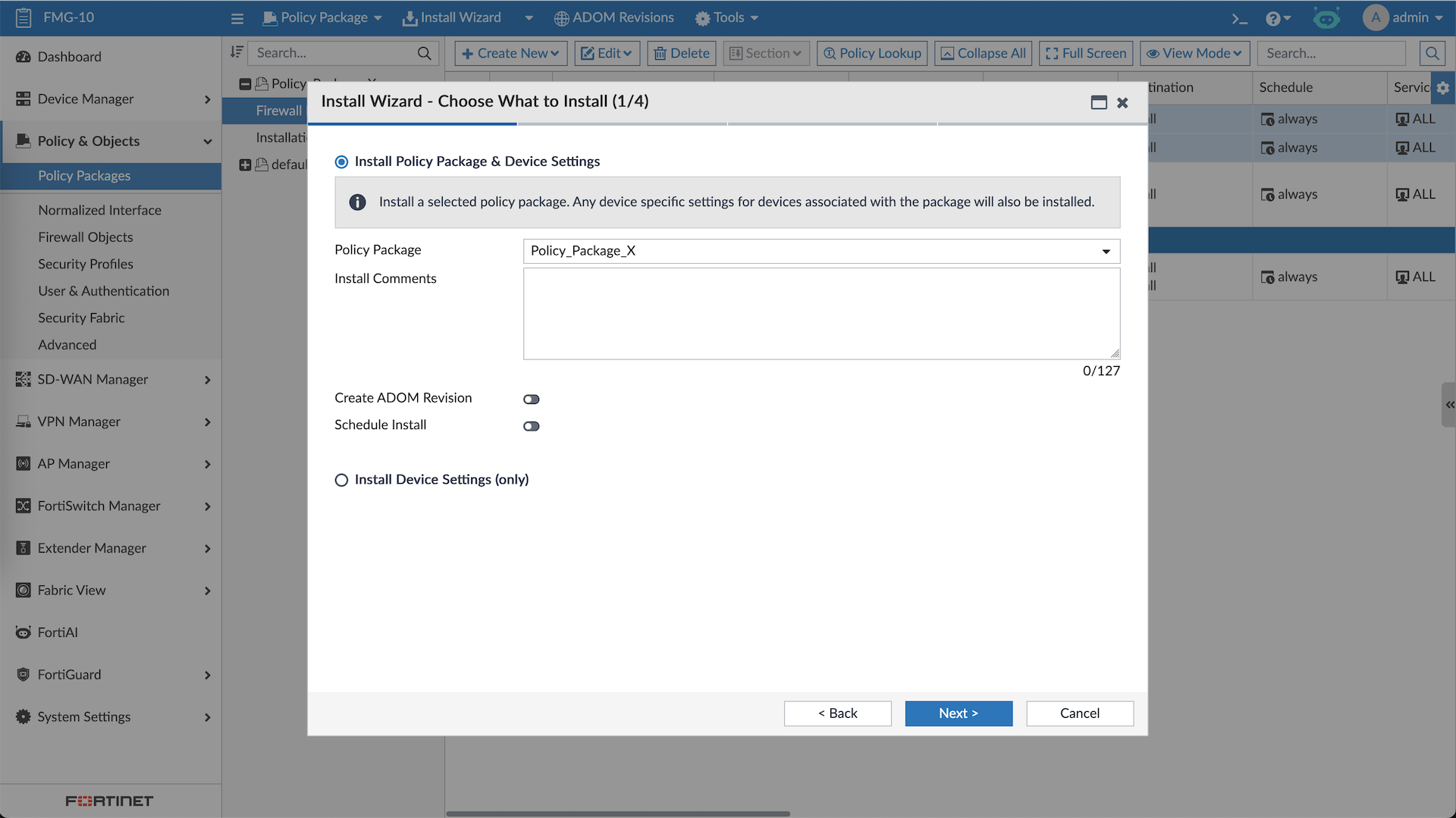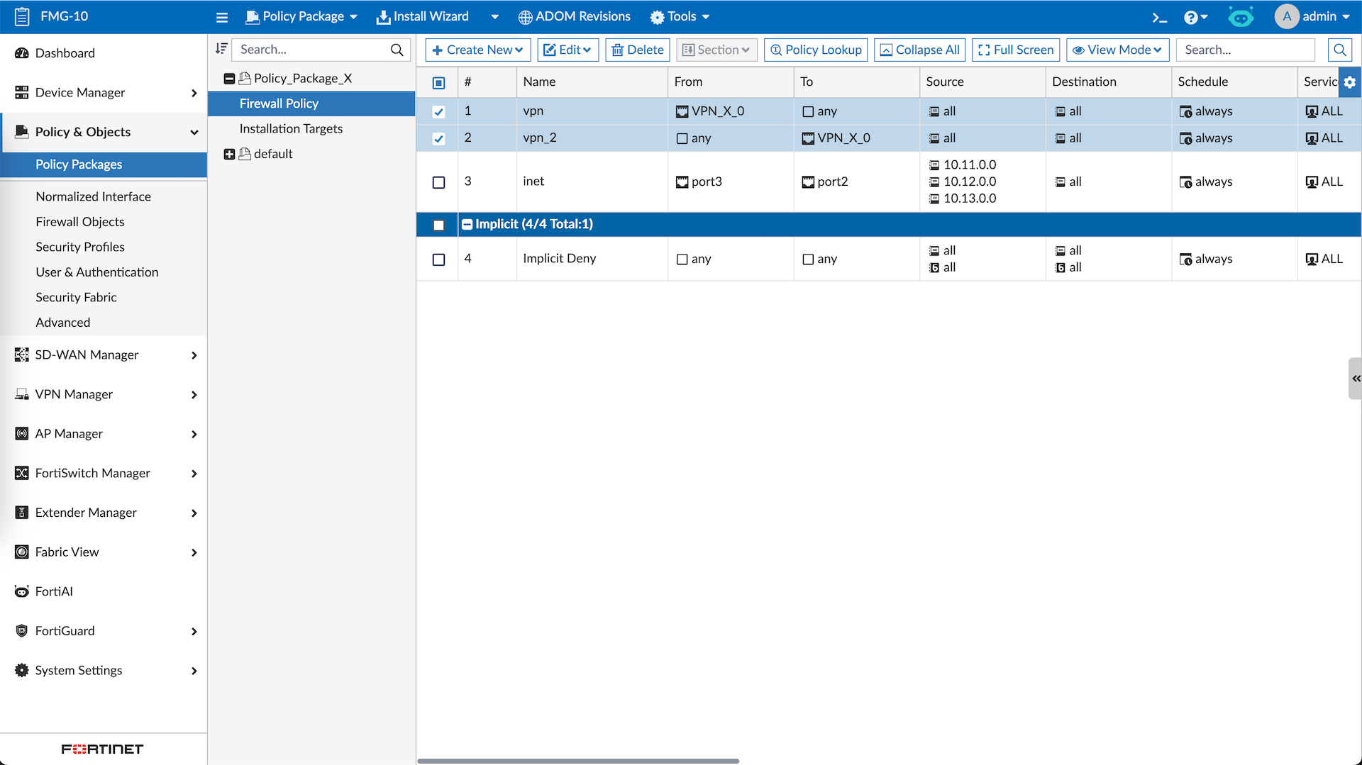 While we’re at it, lets also add some firewall policies using Policy Package