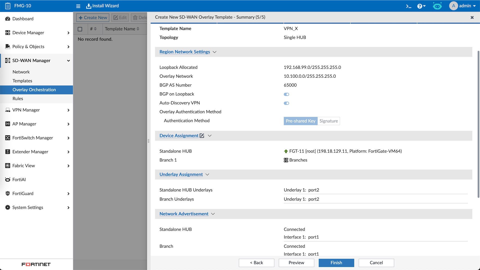 One this is still missing, which is the SD-WAN configuration. Here we will create a new SD-WAN Template for Hub and Spokes