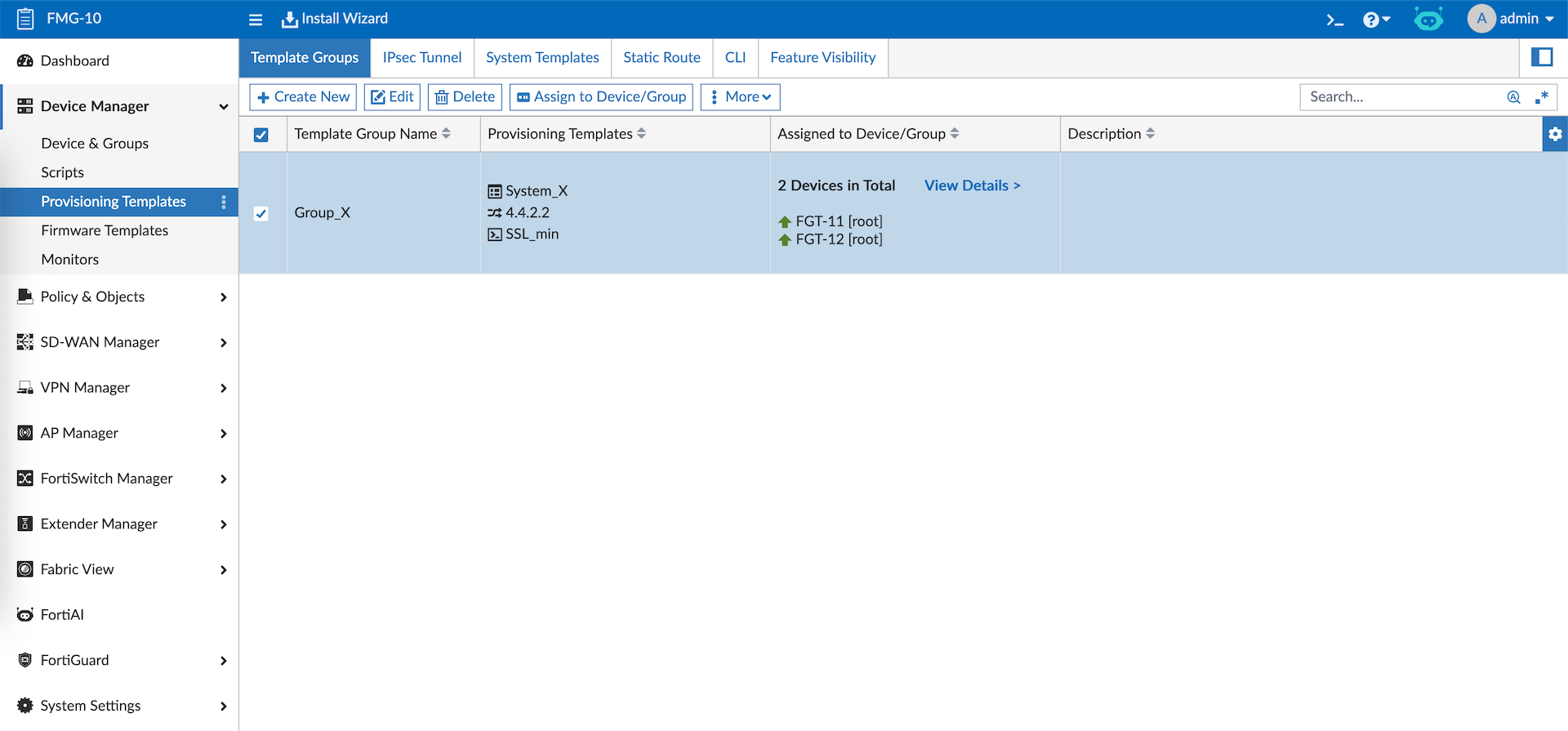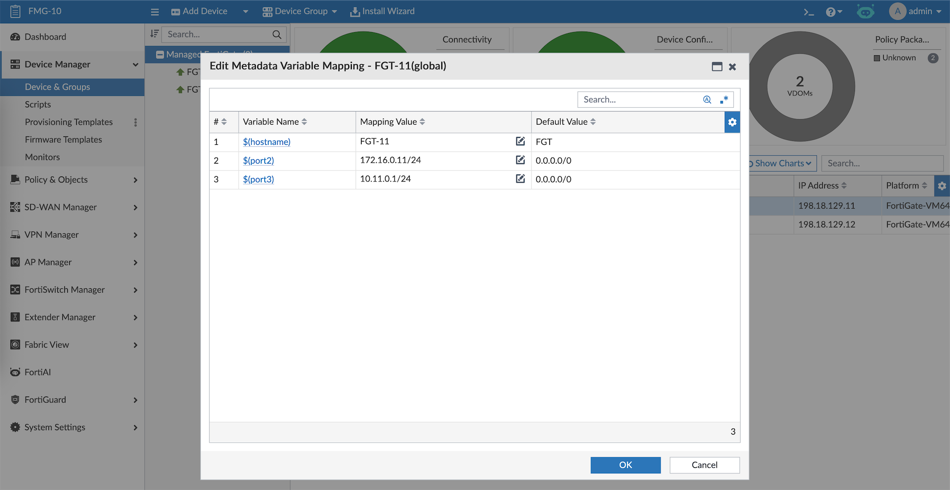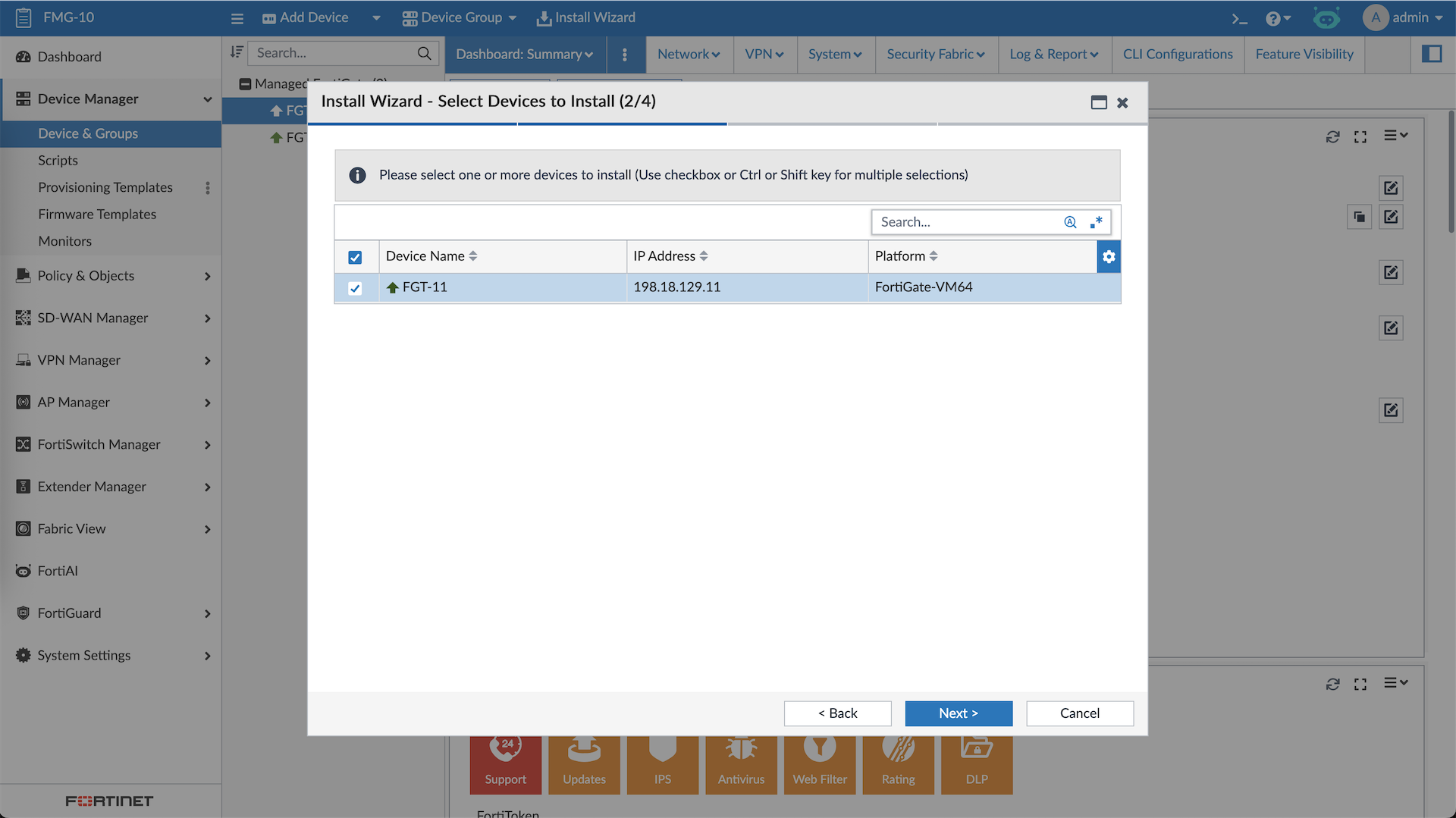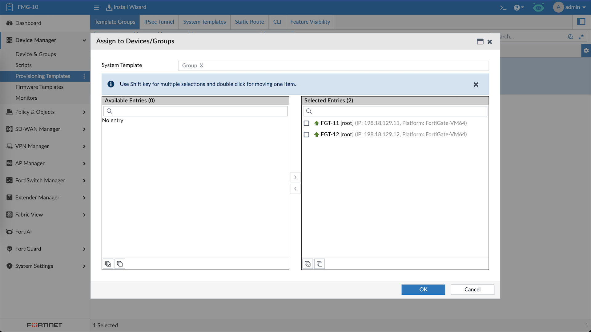 FMG allows us to manage multiple Fortinet devices in a single dashboard, here we have 2 FGTs that’s already been registered