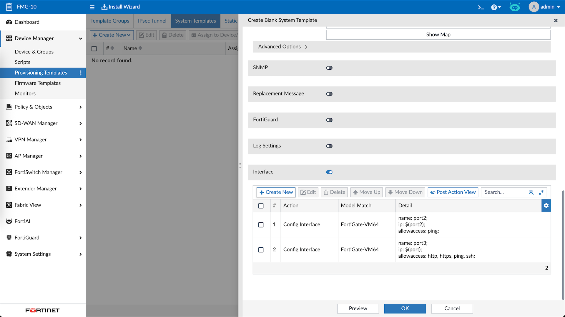 Next we will create a System Template where we configure the Port2 & Port3