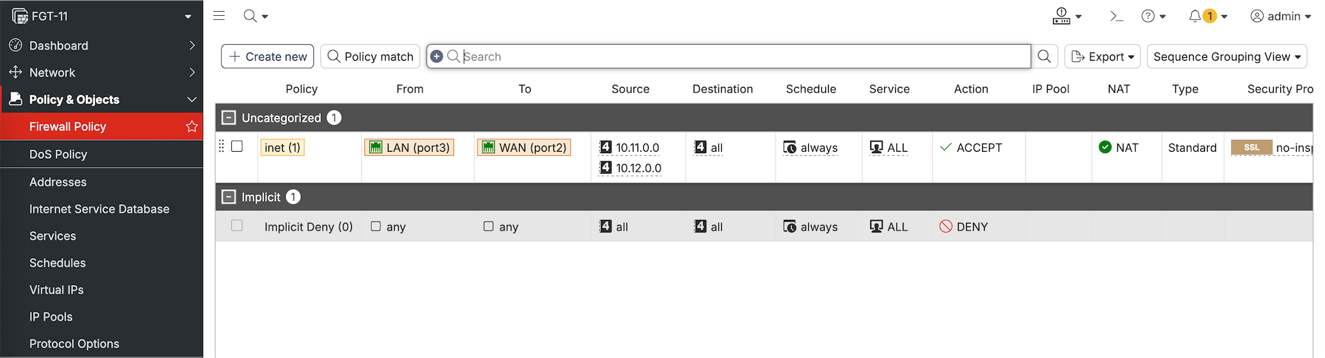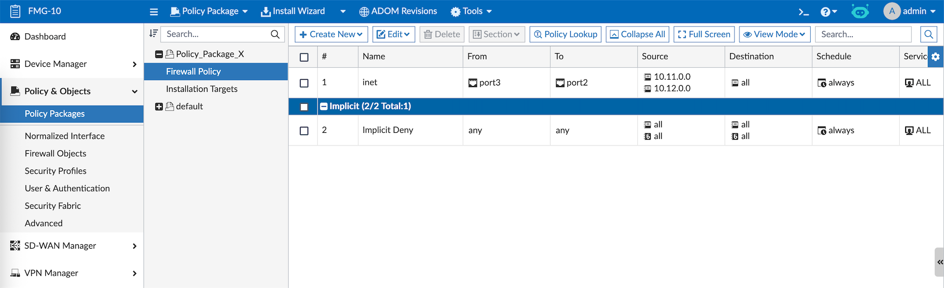 A policy package is a collection of firewall policies and related objects that are deployed together to one or more FortiGate devices. Here we will create new Policy Package