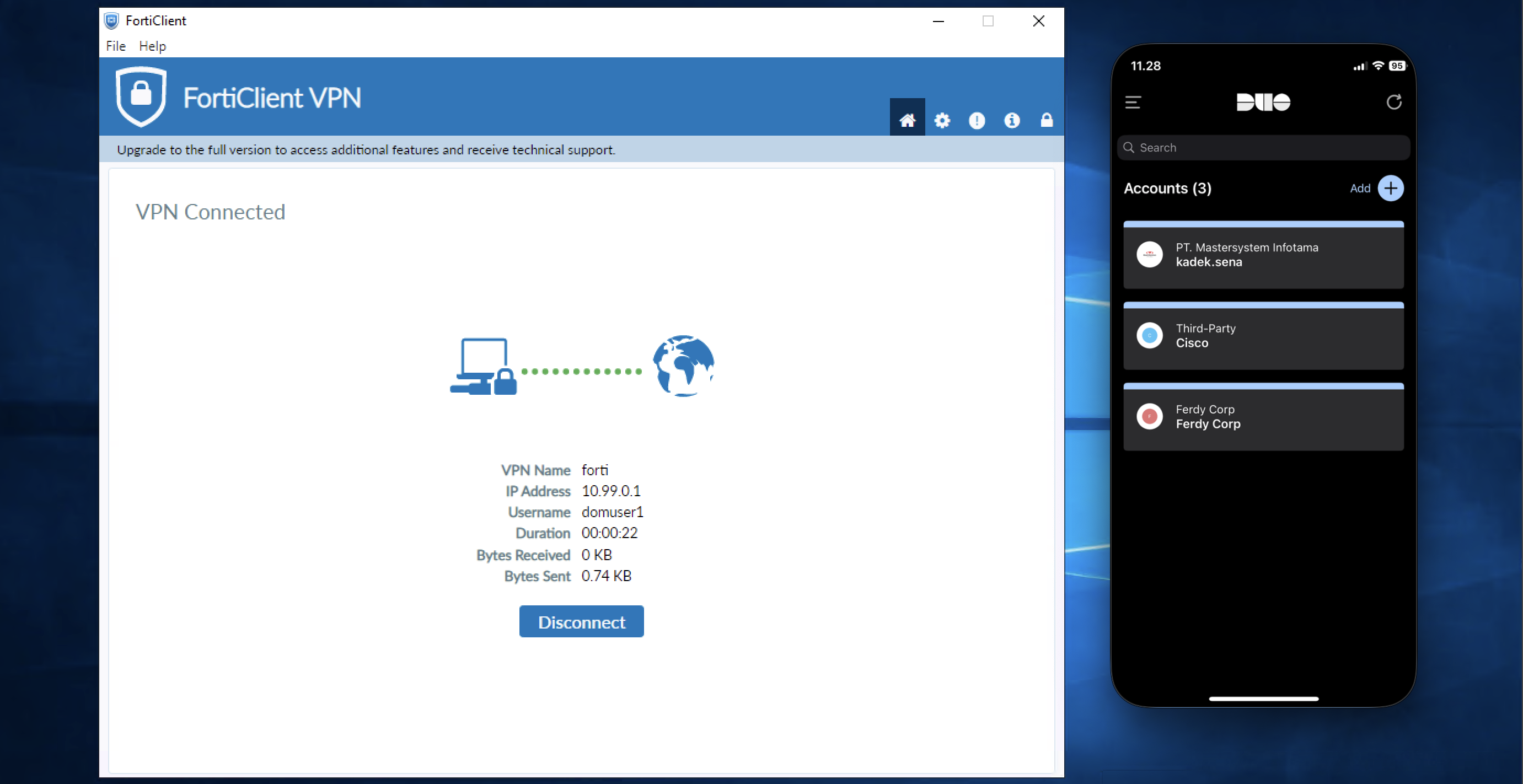 And now if we connect to VPN using AD users, we’ll be prompted a Duo MFA