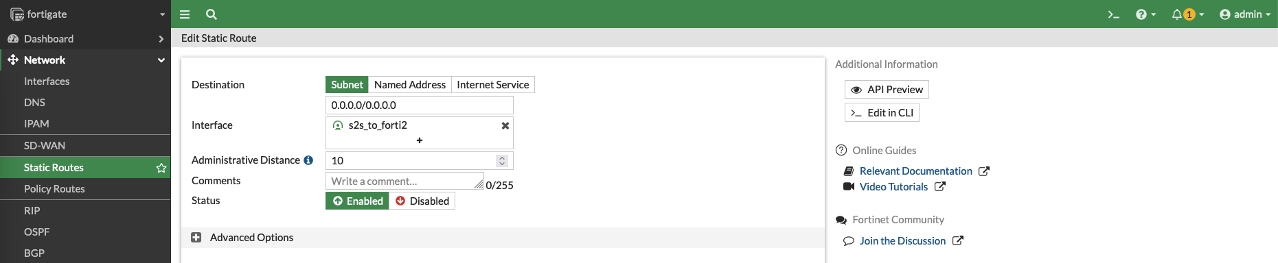 And lastly, create a route going out to the VPN interface