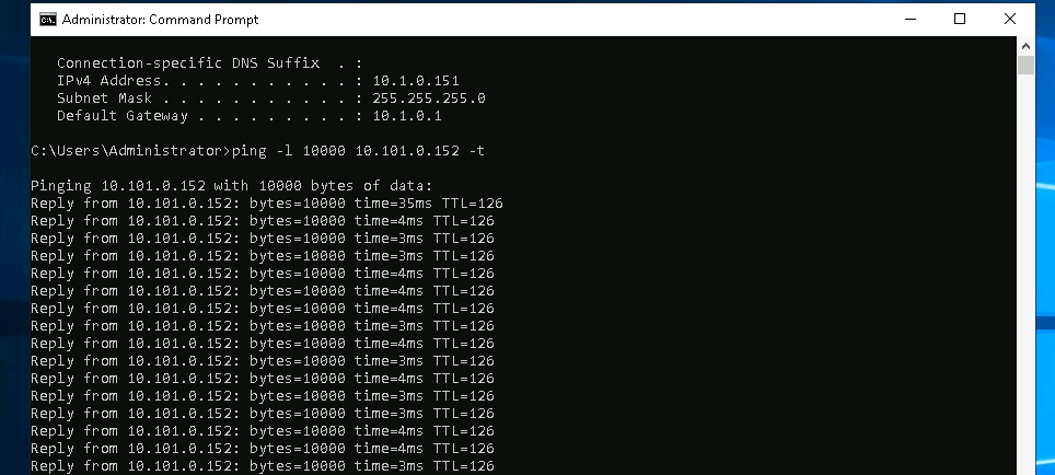 And we’re able to ping from local subnet 1 to local subnet 2