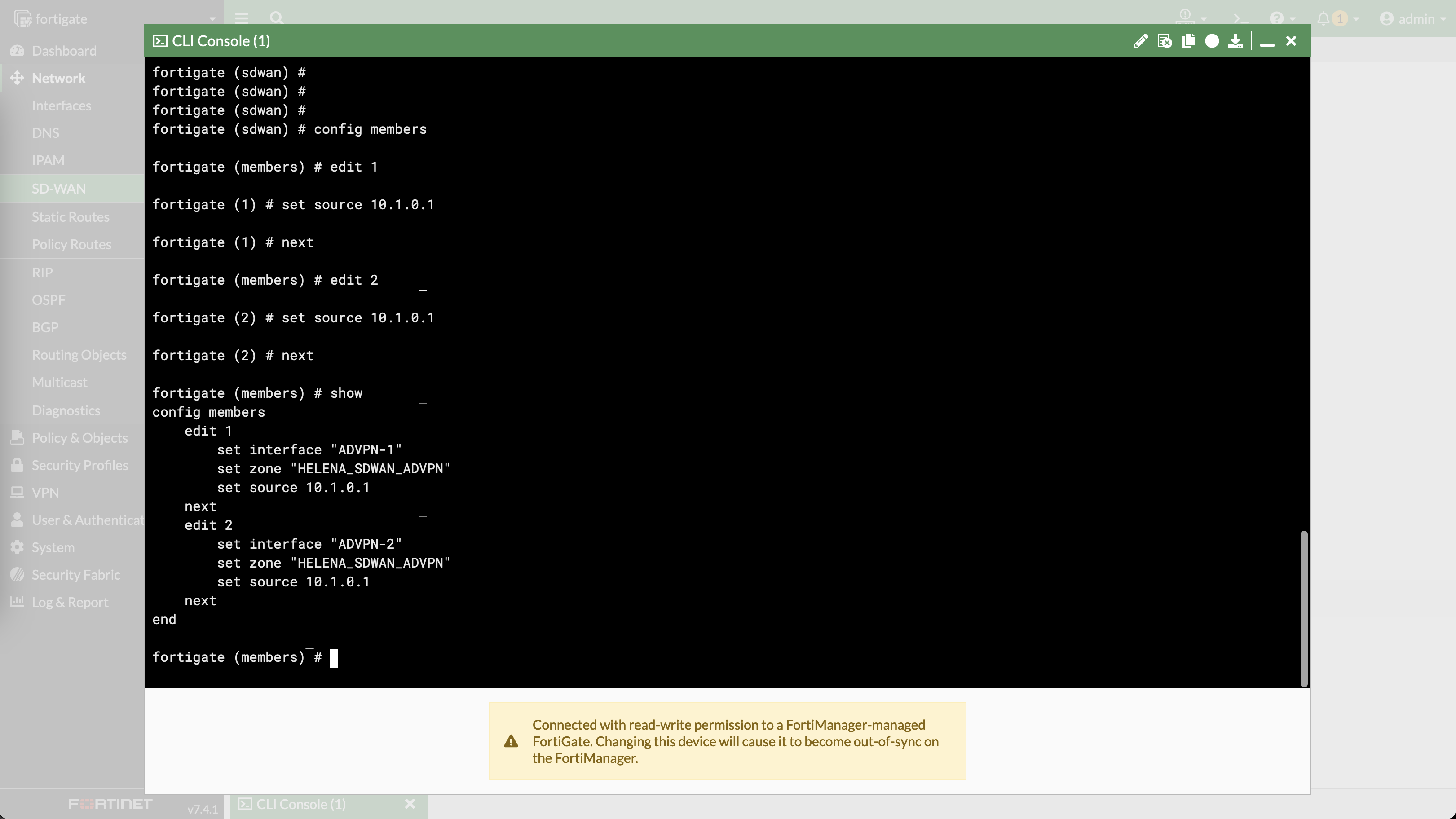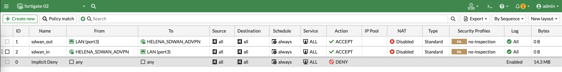 Create two Policies to allow traffic going in and out of the SD-WAN interface