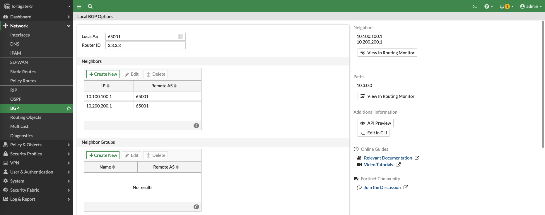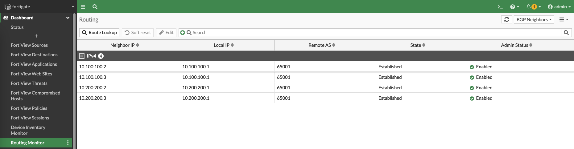 And on Routing Monitors, we can see all spokes’ VPN interfaces as the BGP Neighbors