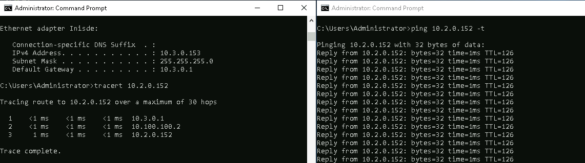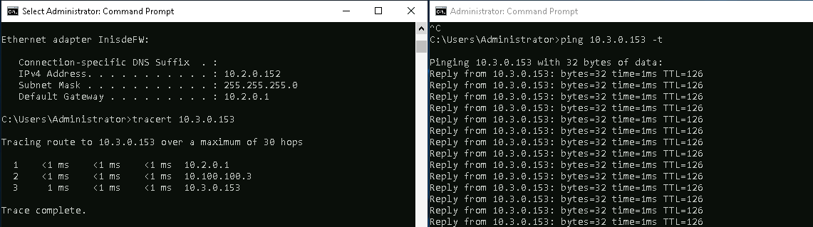 On the client PC on Site 2, testing with ping proves that the connectivity is up going to the Site 3