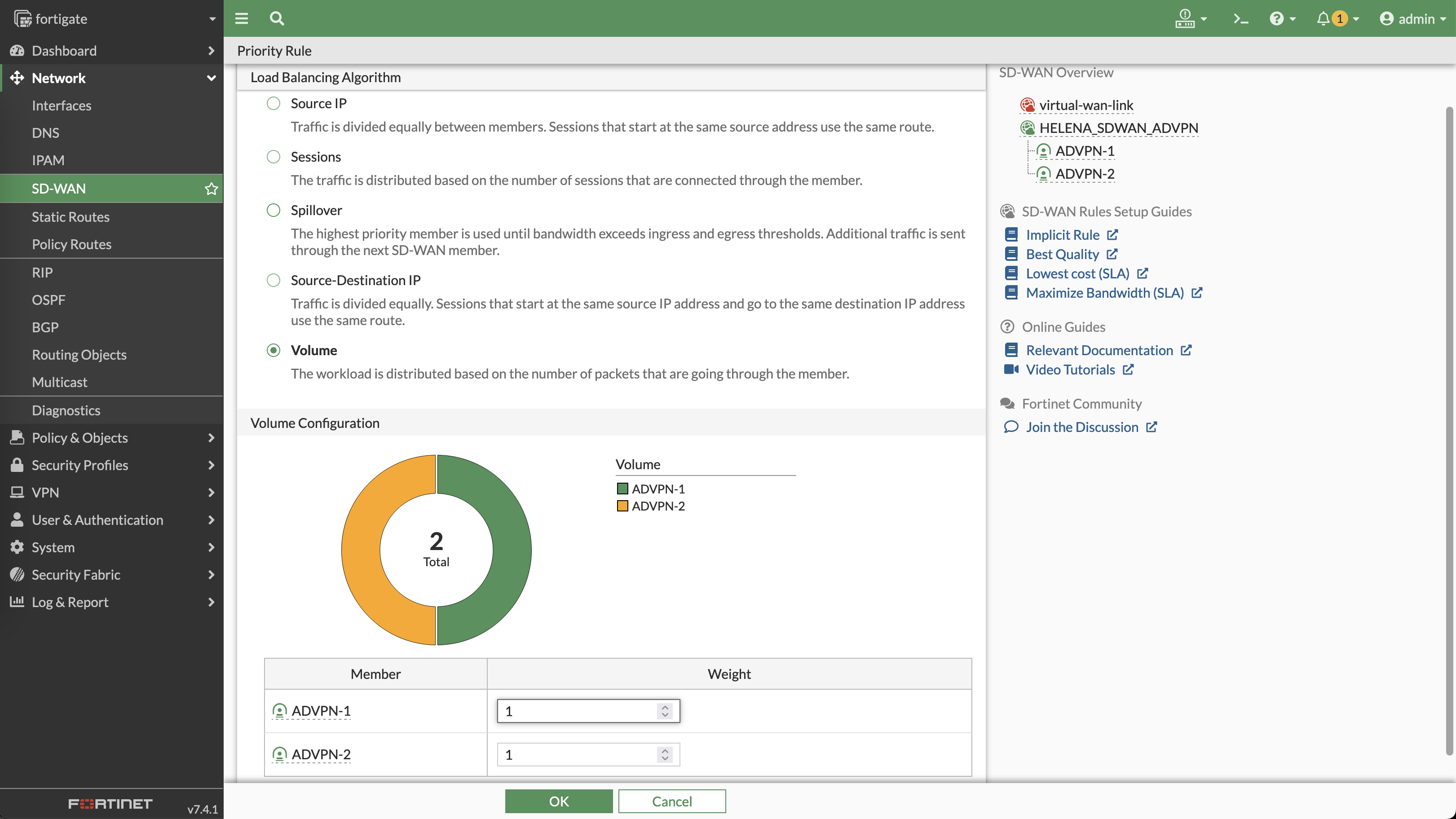 To also enable load balancing on SD-WAN VPN Tunnel, use Volume based priority rules