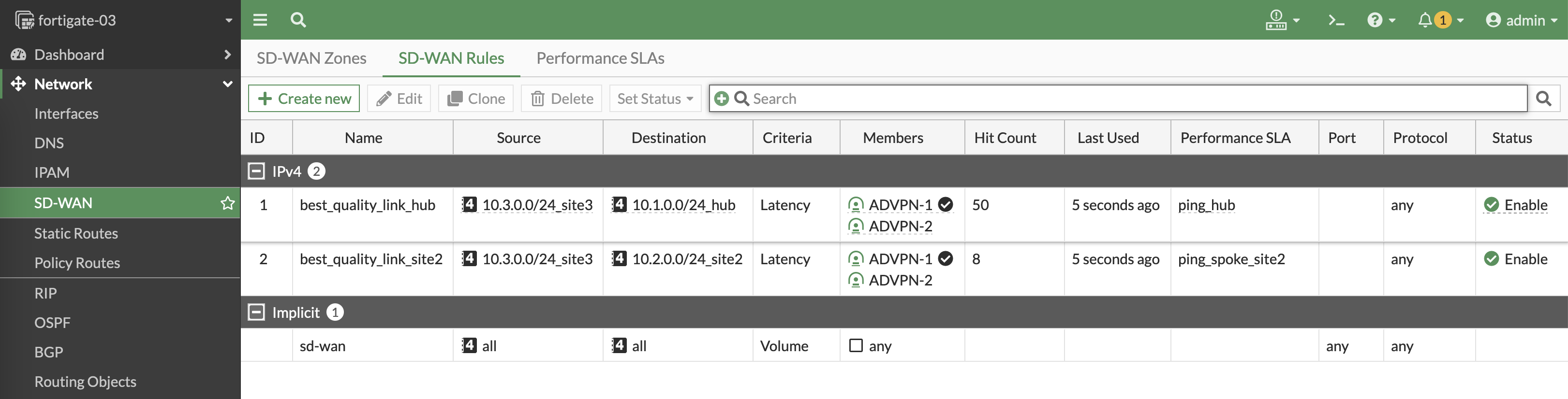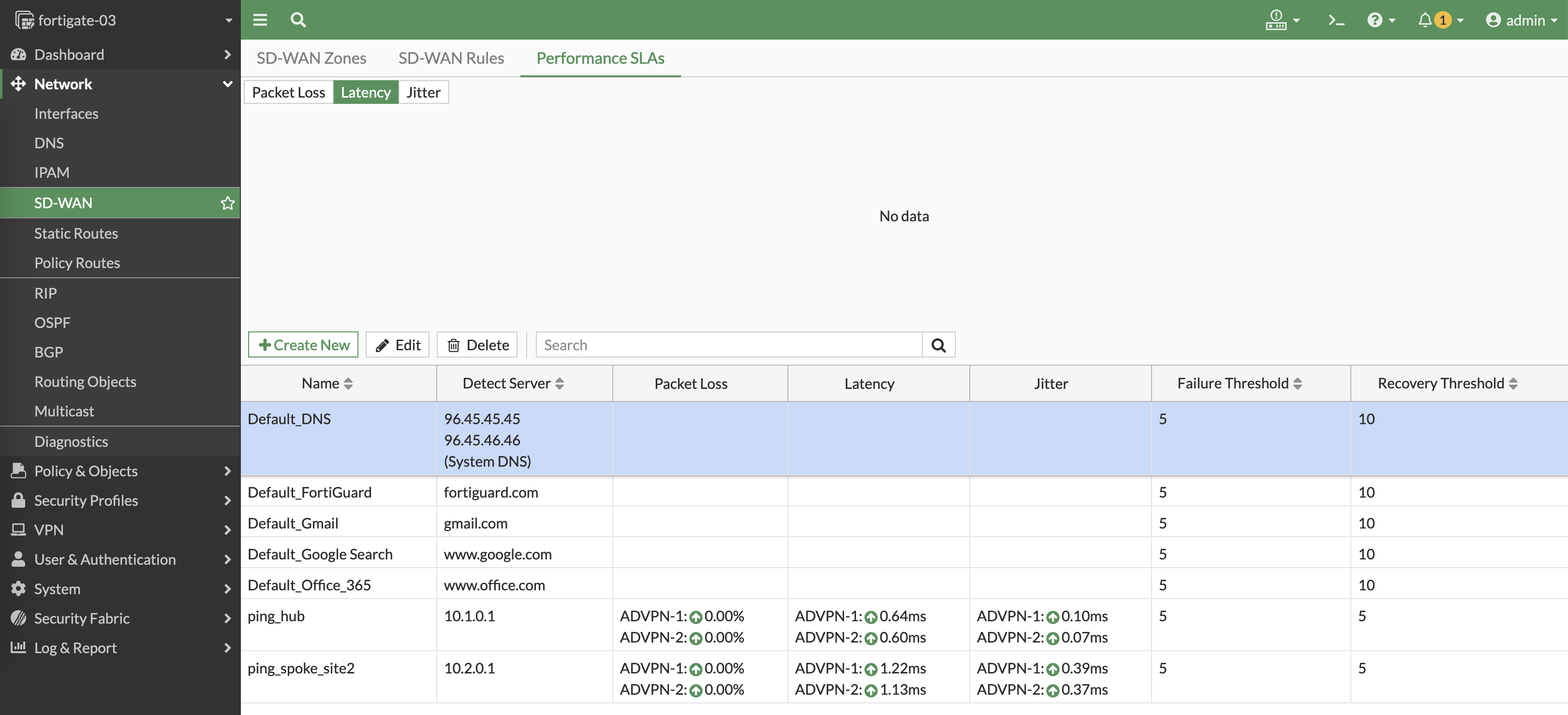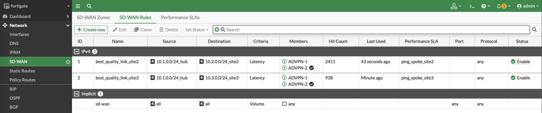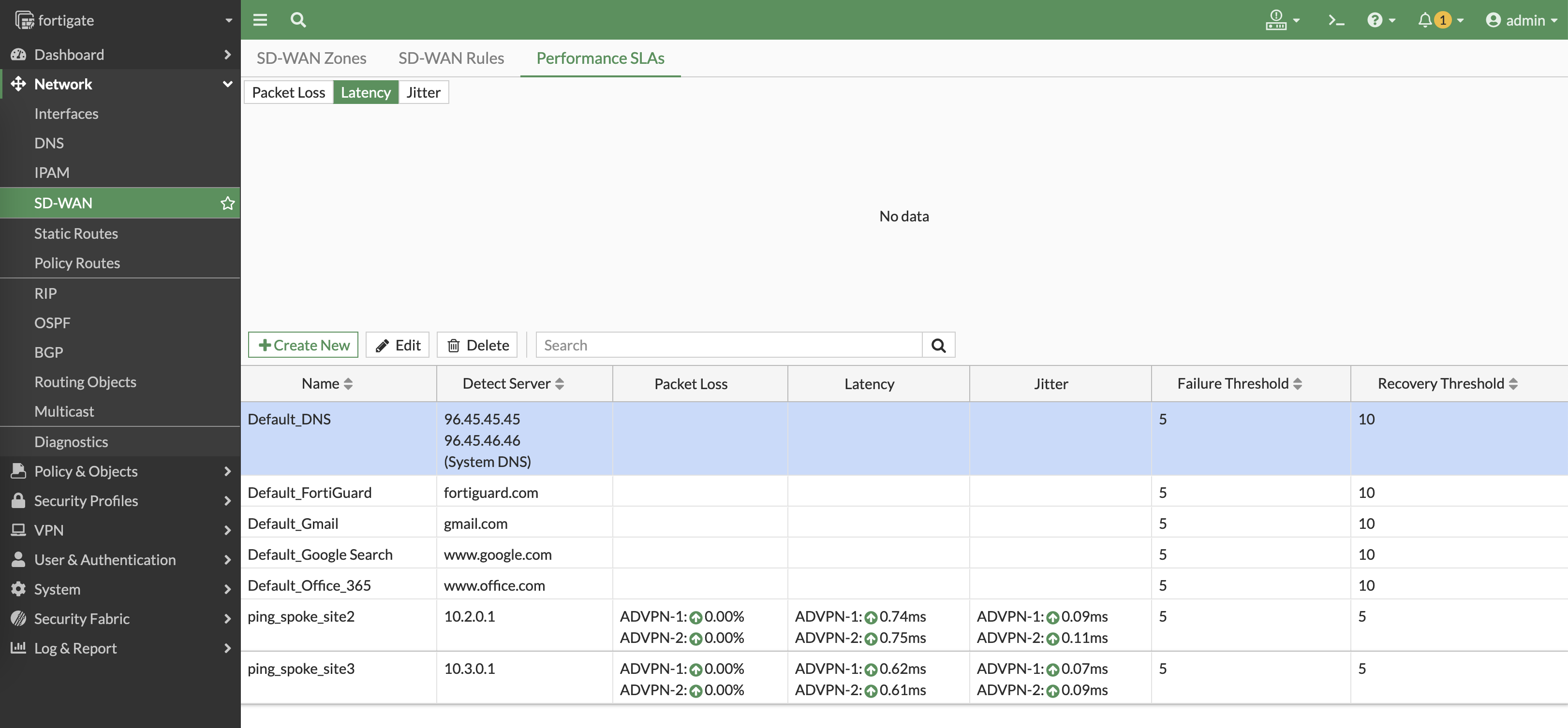 Here we can see the rules determine which VPN has the best latency to reach the sites, and will continuously measure the latency to make sure the best path is used