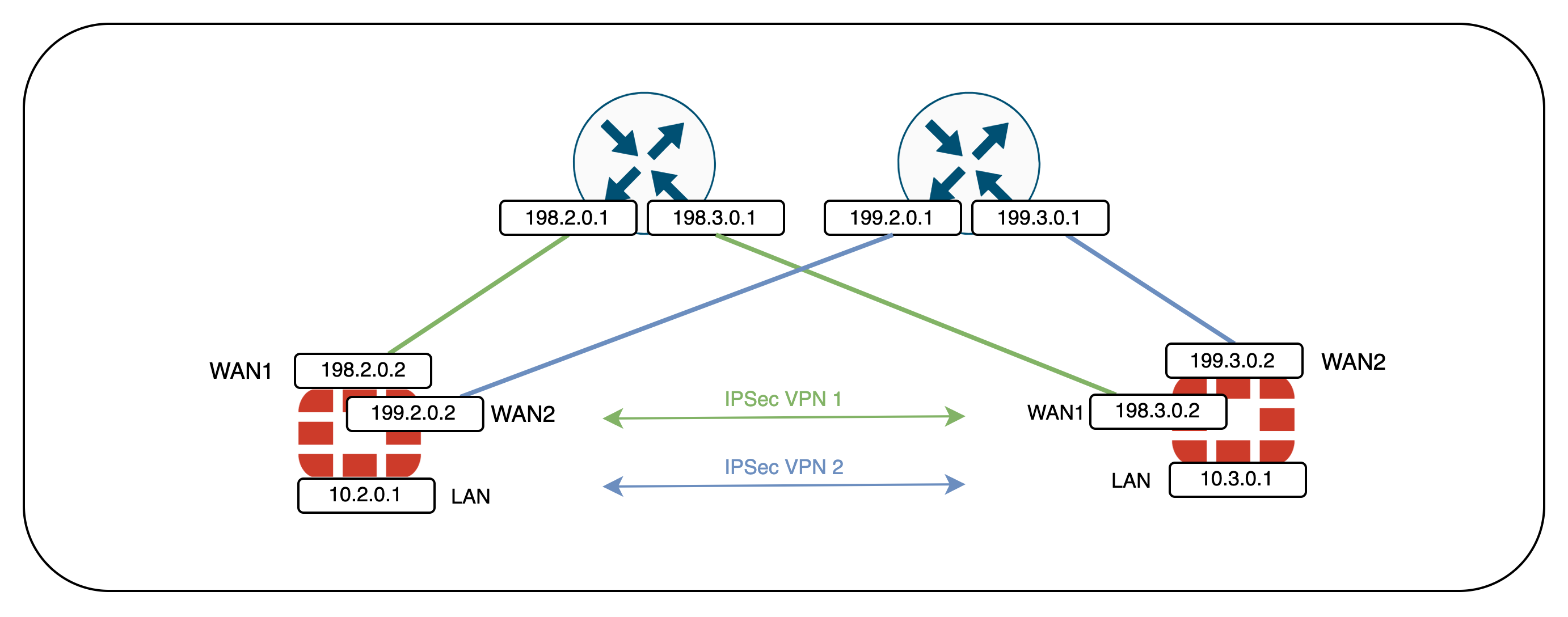 For site 2, the configuration is exactly the same but mirrored