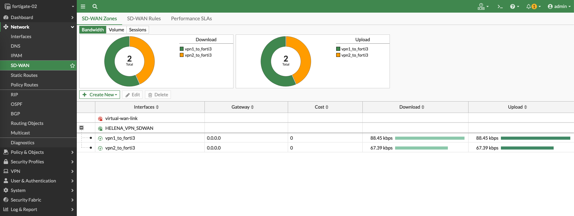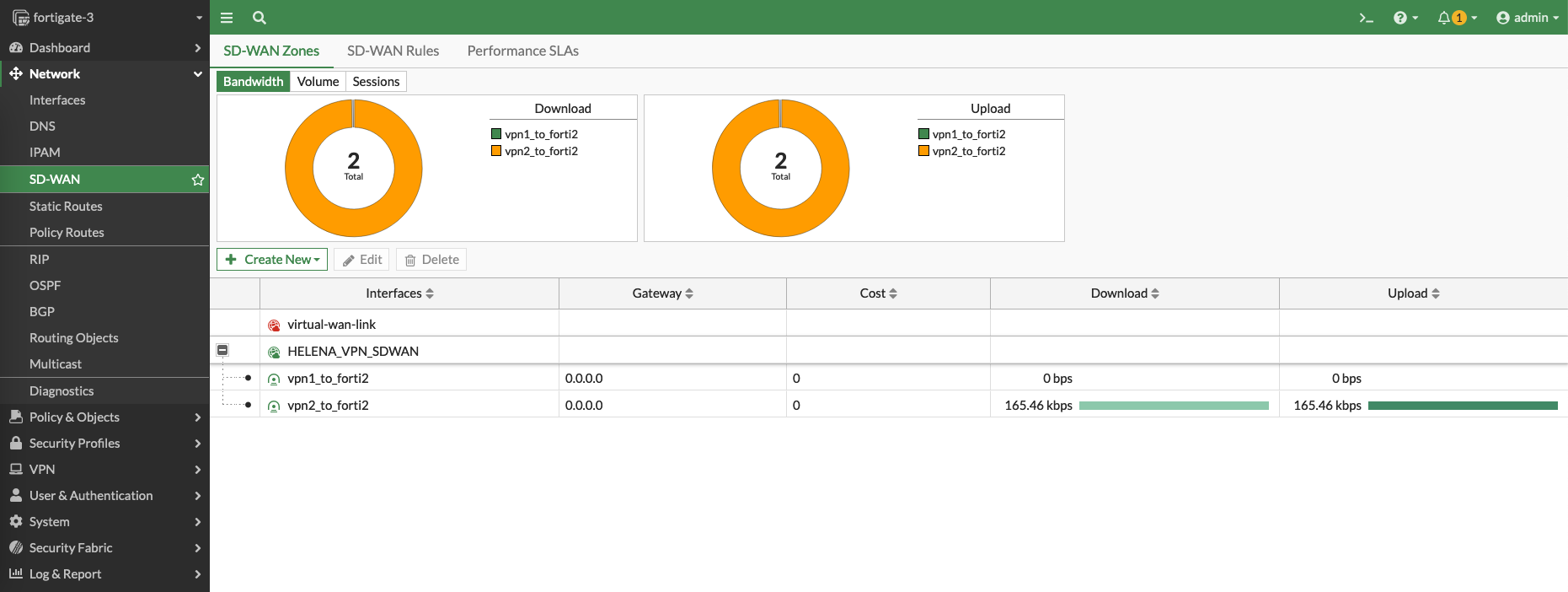 Now both VPNs within the SD-WAN Zone should be up and running