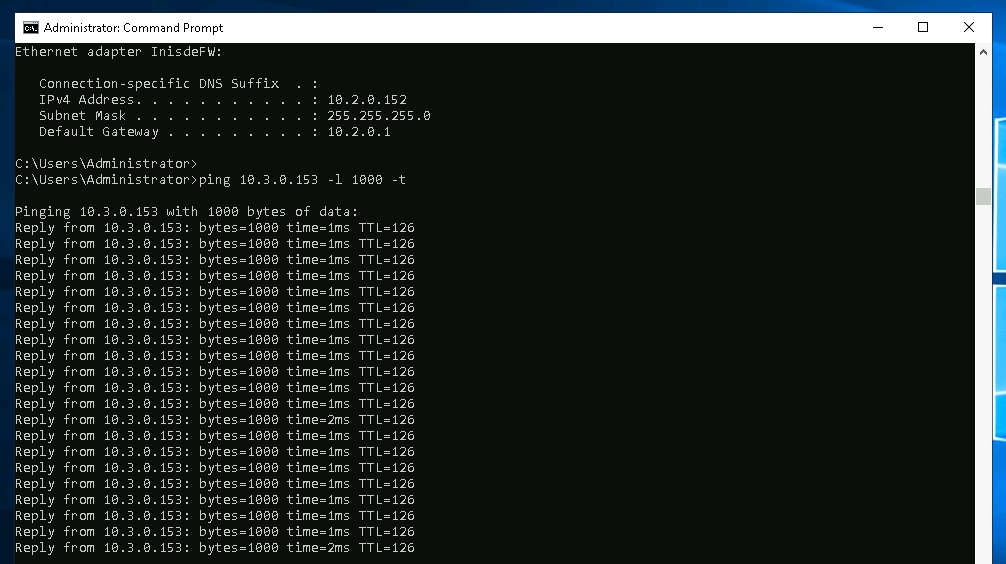And we’re able to ping from local subnet 1 to local subnet 2