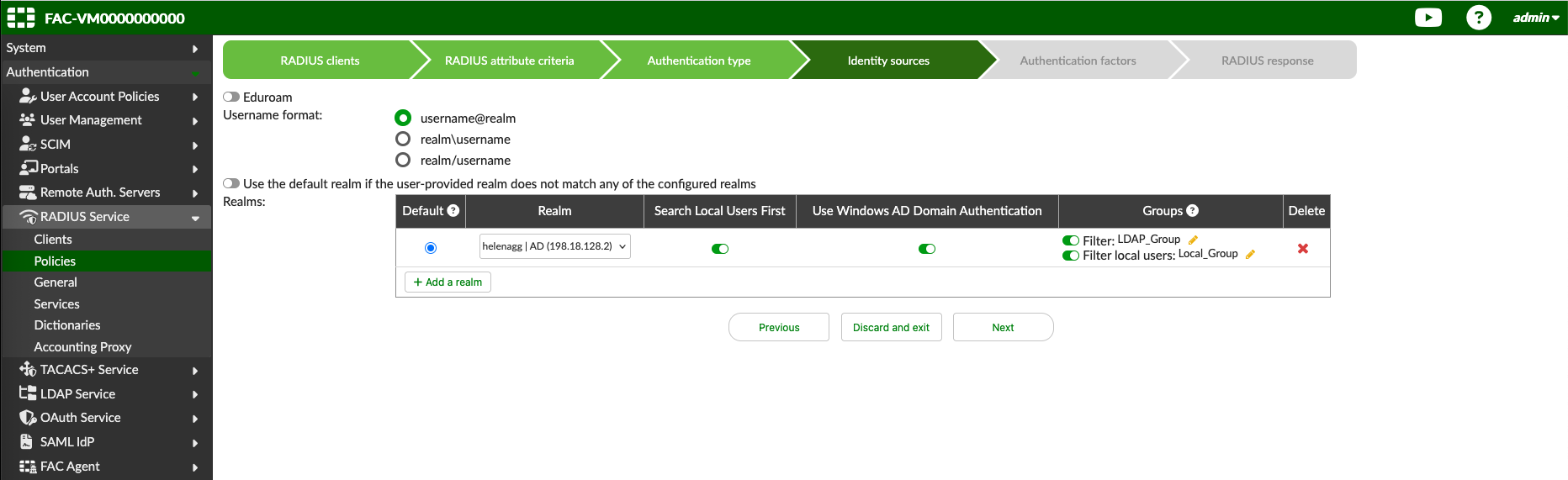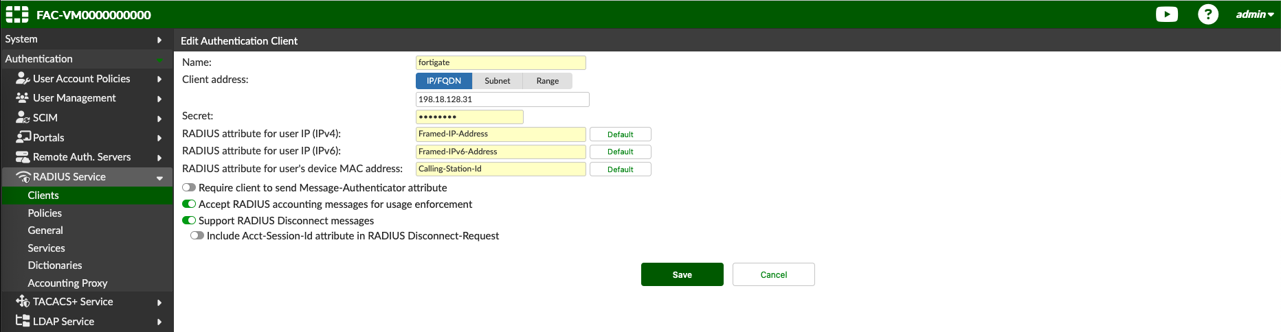 Then on RADIUS Service » Clients, add Fortigate as the client