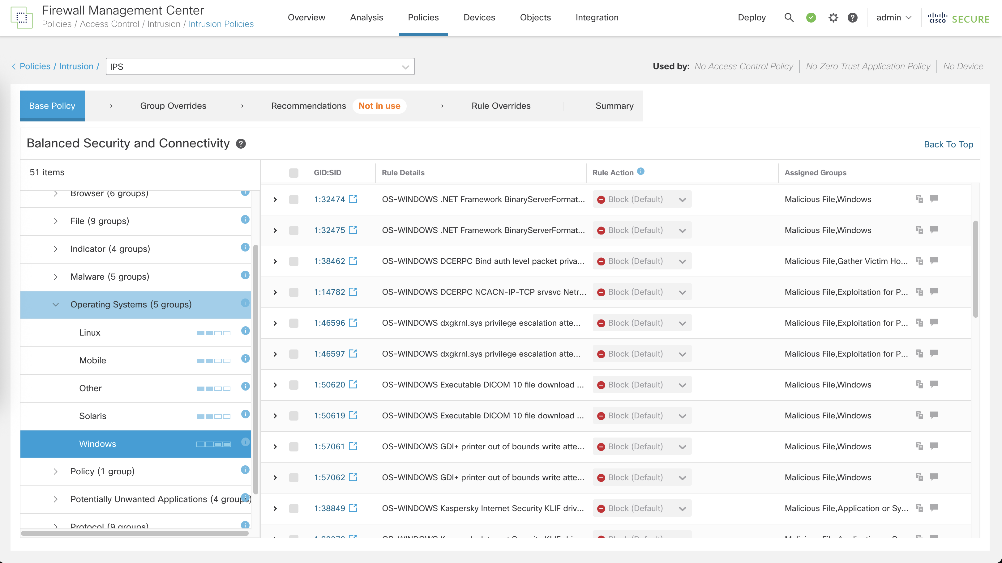 Cisco FTD Intrusion Policy