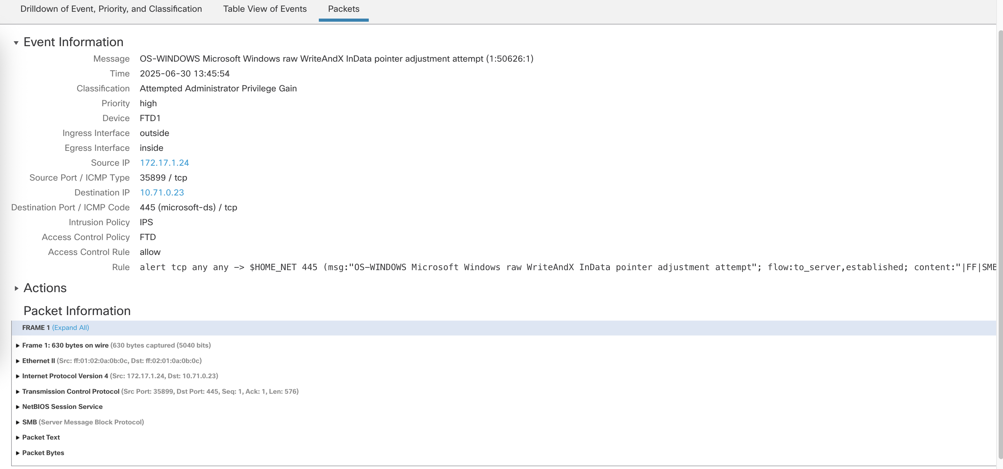 We can also see the deatils of the attack on the Intrusion Events