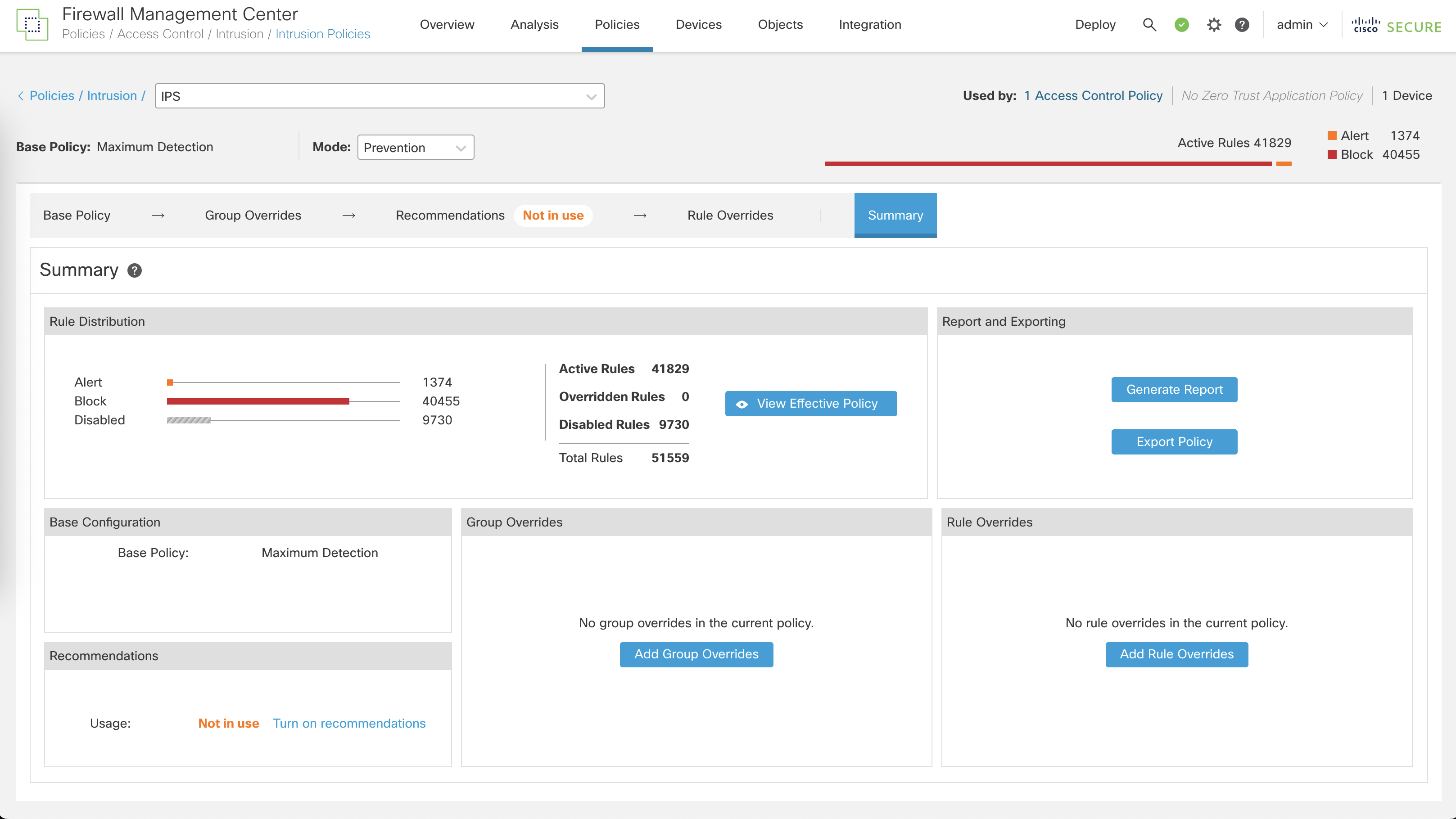 Before we used Balance IPS Base Policy, now lets try using the Maximum Detection