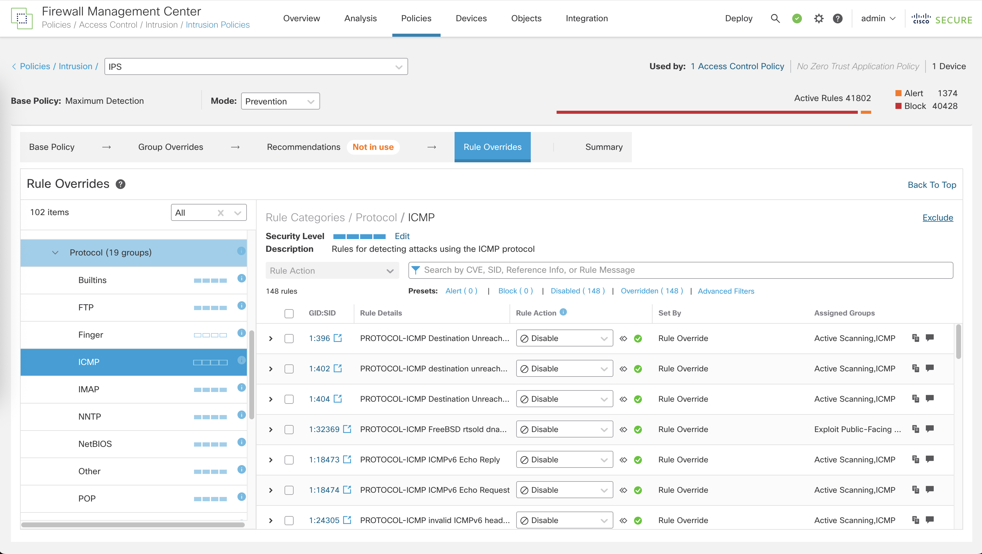 We can tune this further by adjusting the detection as we need, here we’ll override the ICMP block so PING is no longer blocked