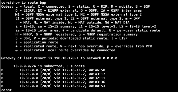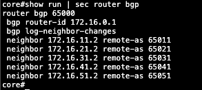 Here’s the BGP configuration on the Core Switch side