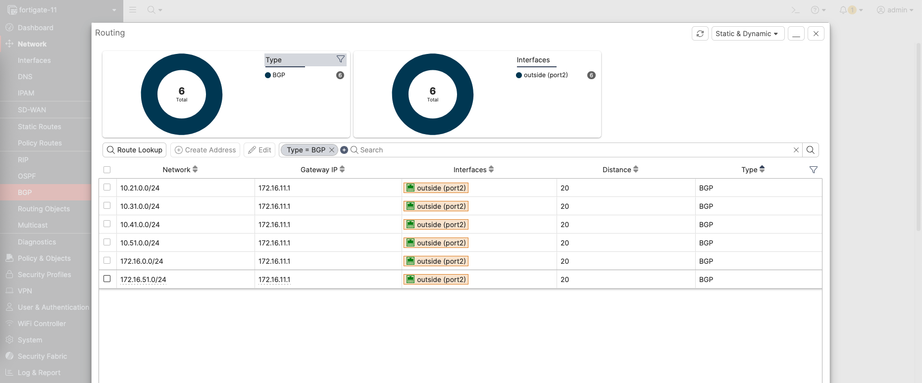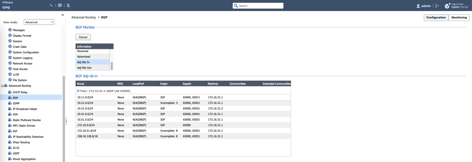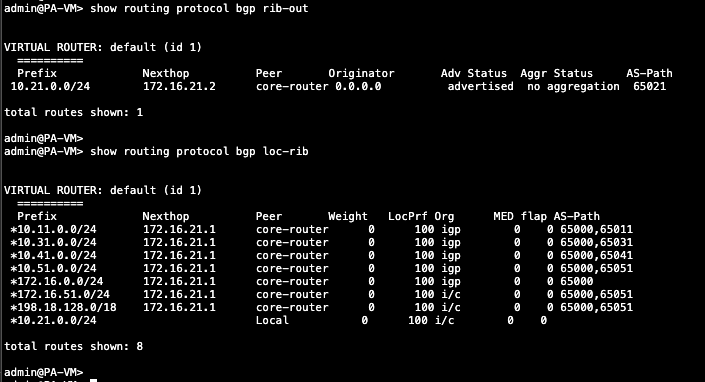 Here we can see the routes received by BGP