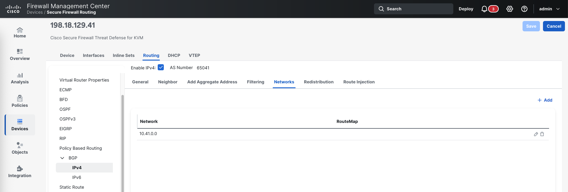 On FTD managed by FMC, first we enabel BGP and give it AS Number