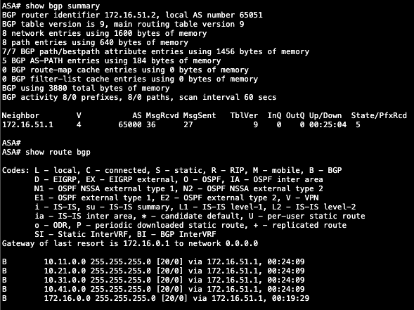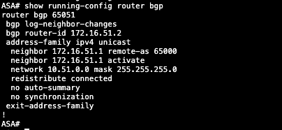 Here’s the BGP configuration on ASA side