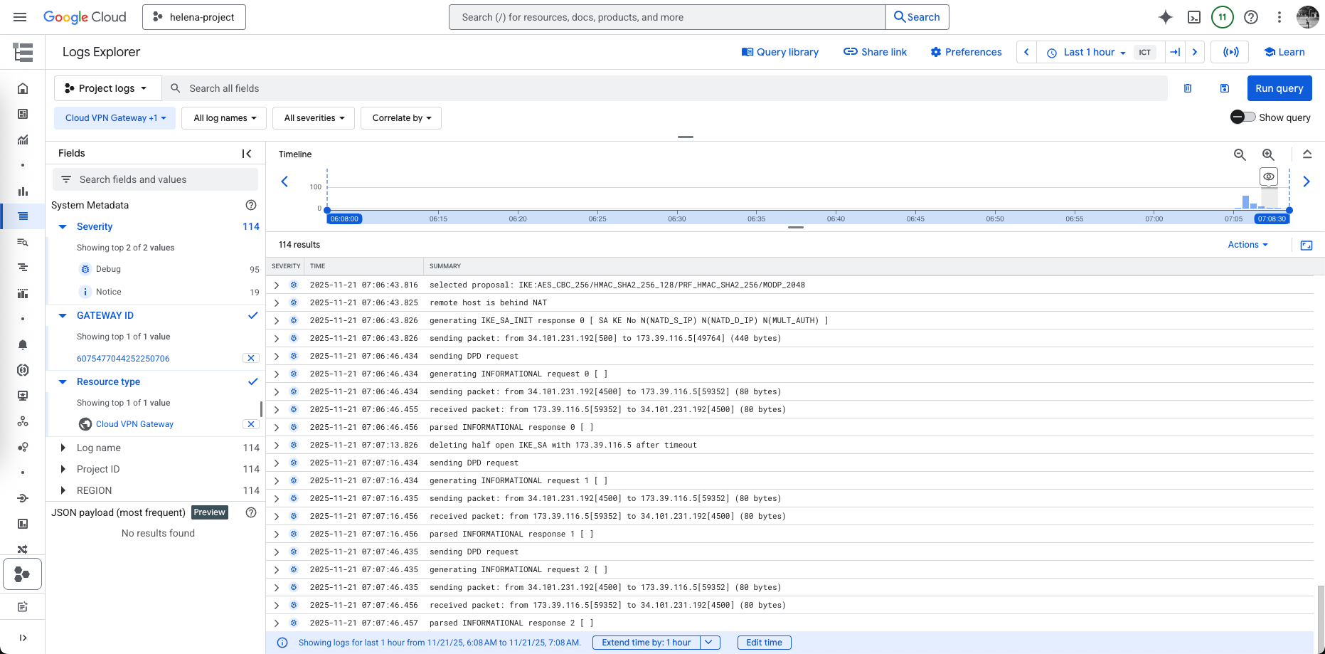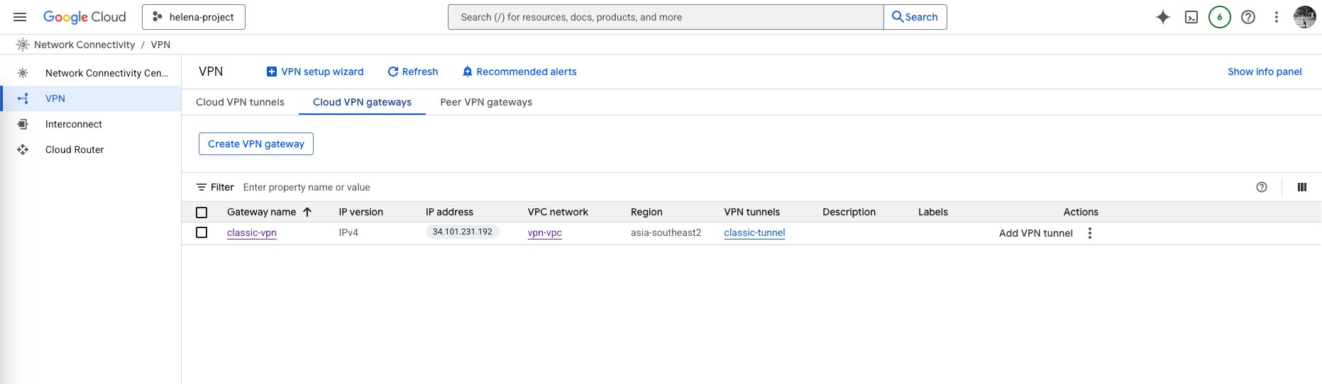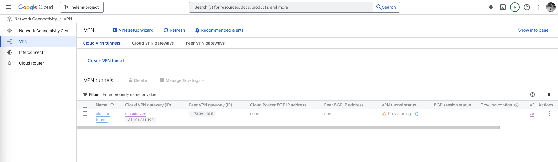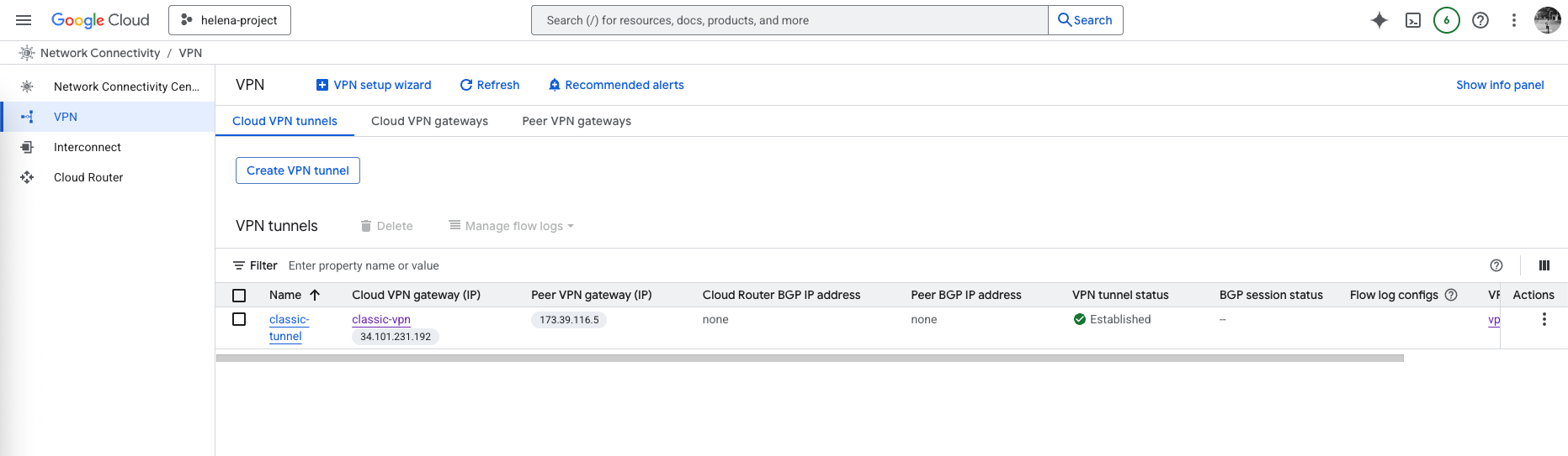 On GCP side, we can see the Tunnel is now Established