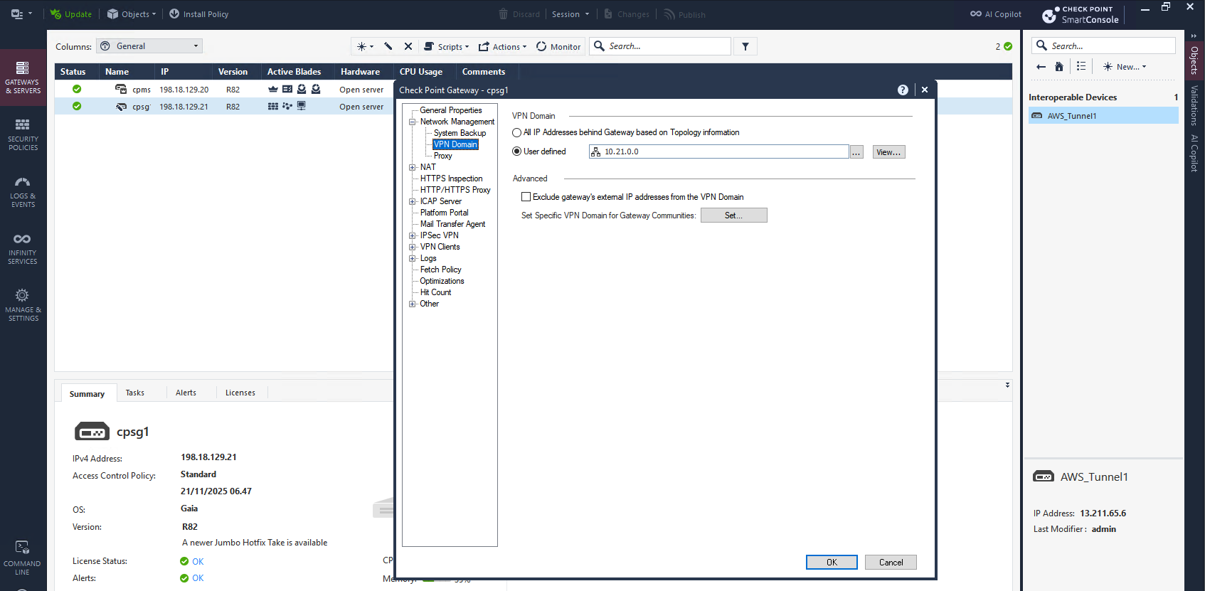 On CP side, first we enable the VPN Domain of the local subnet