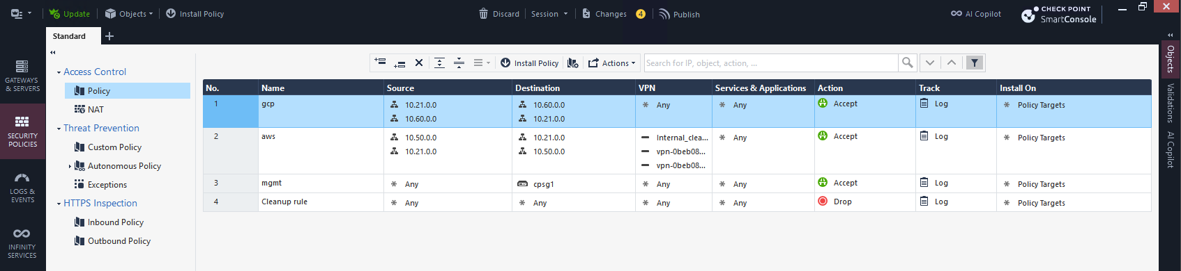 We can see the traffic going back and forth between these 2 subnets here on Check Point’s firewall logs