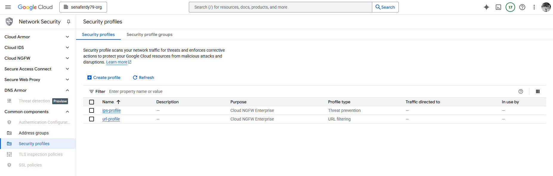 Now we have both our Security Profiles configured