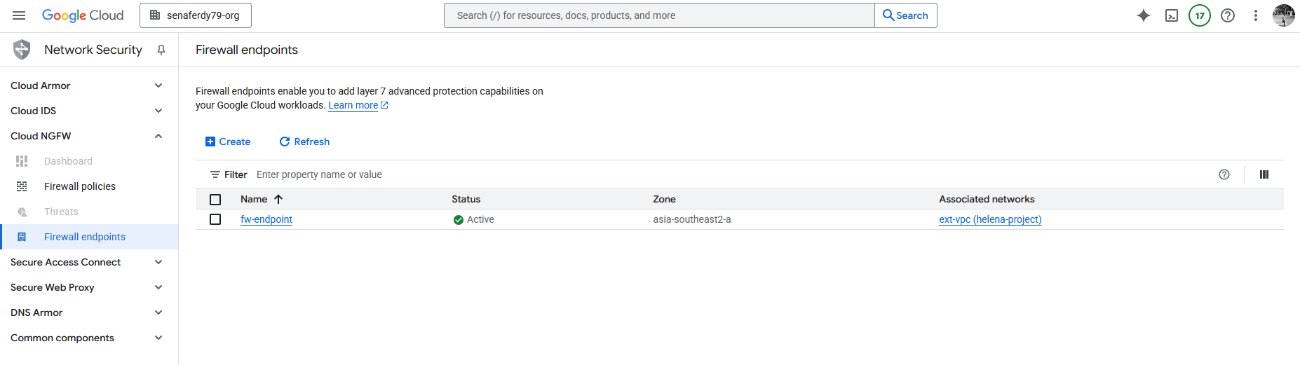 After about 20 minutes, the Firewall Endpoint is now up and running