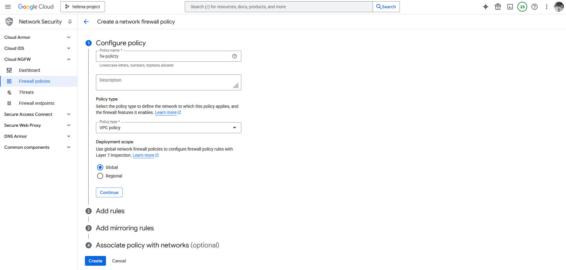 Next we’ll create a Firewall Policy
