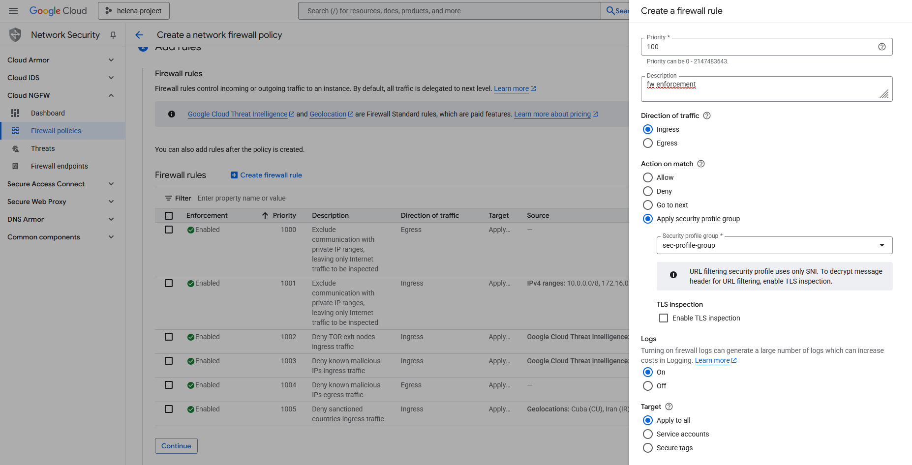 And then create the rules where we attach the Security Profile Groups