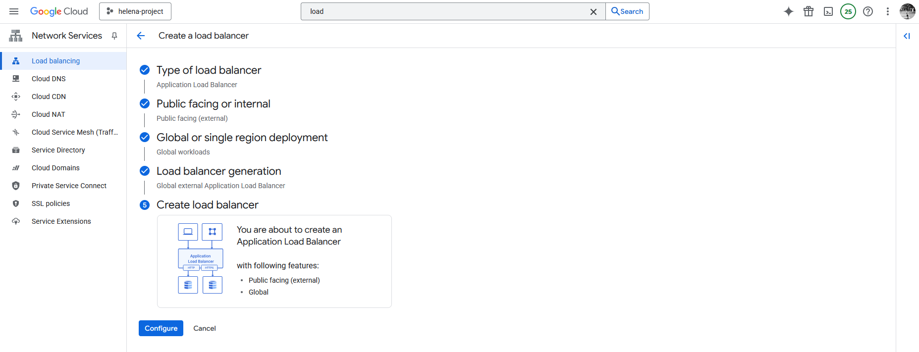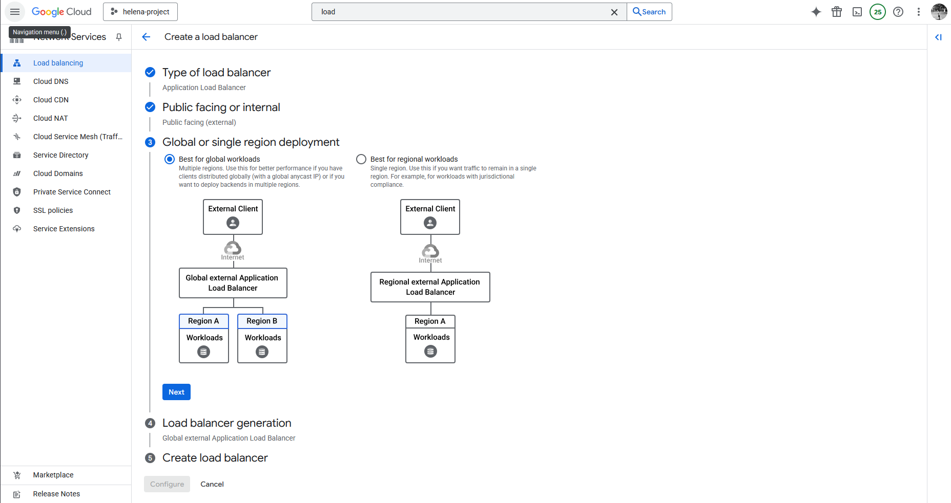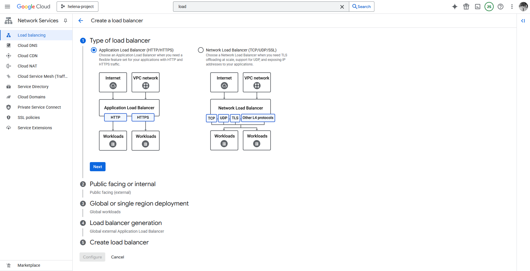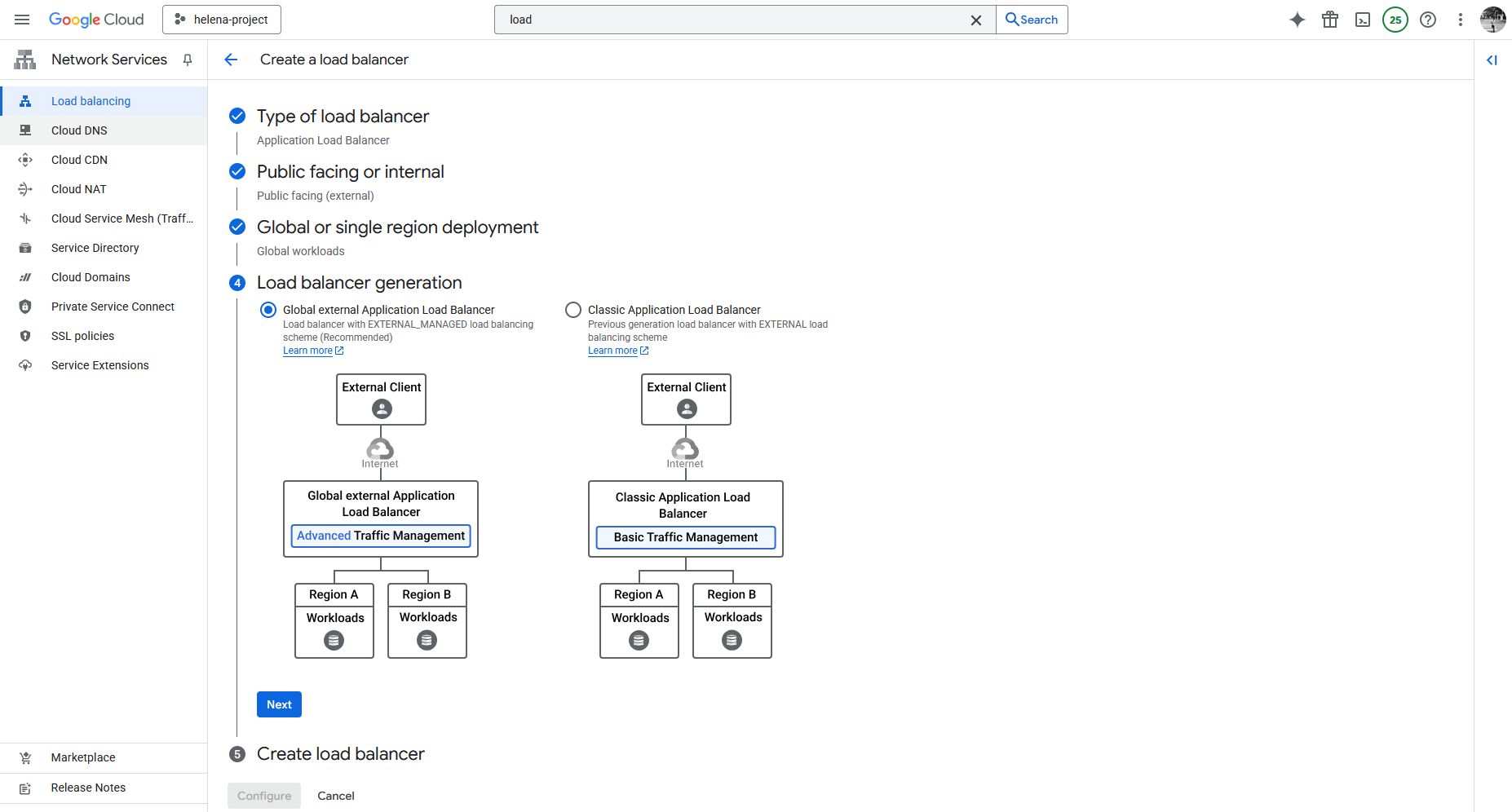 Next we select the Global External Application Load Balancer