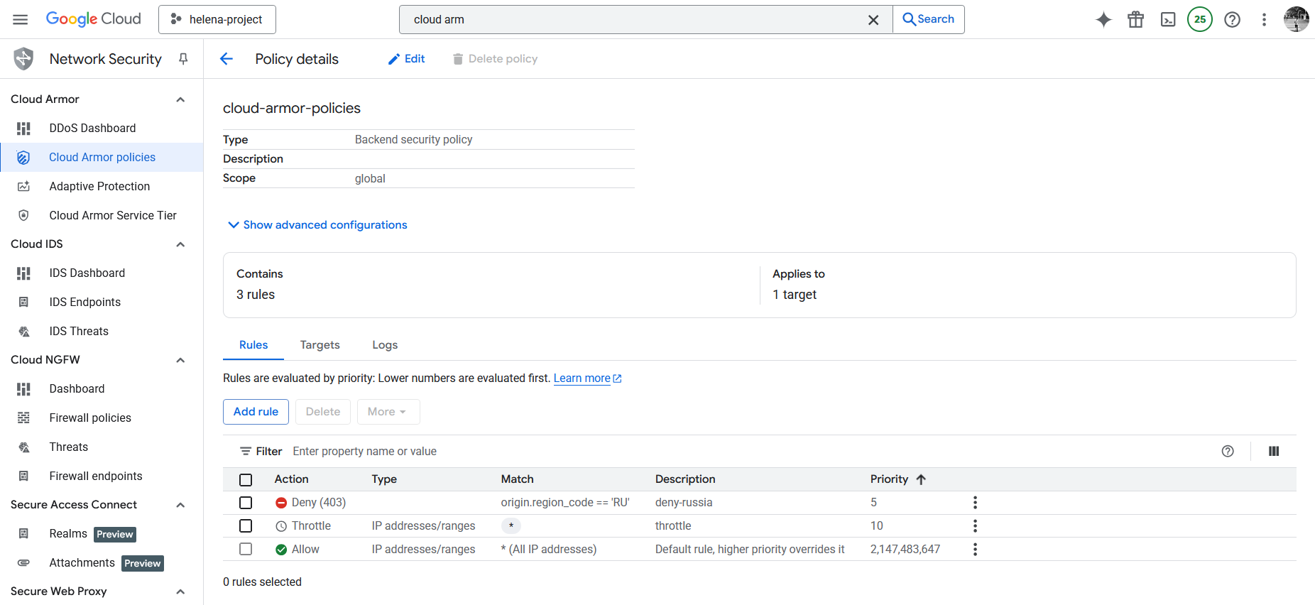 And for the second scenario we will add another rule that blocks access from IP originating from Russia