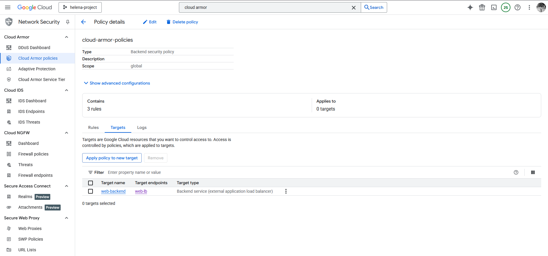 Lastly we can attach this policy into the Backend Service by setting the target